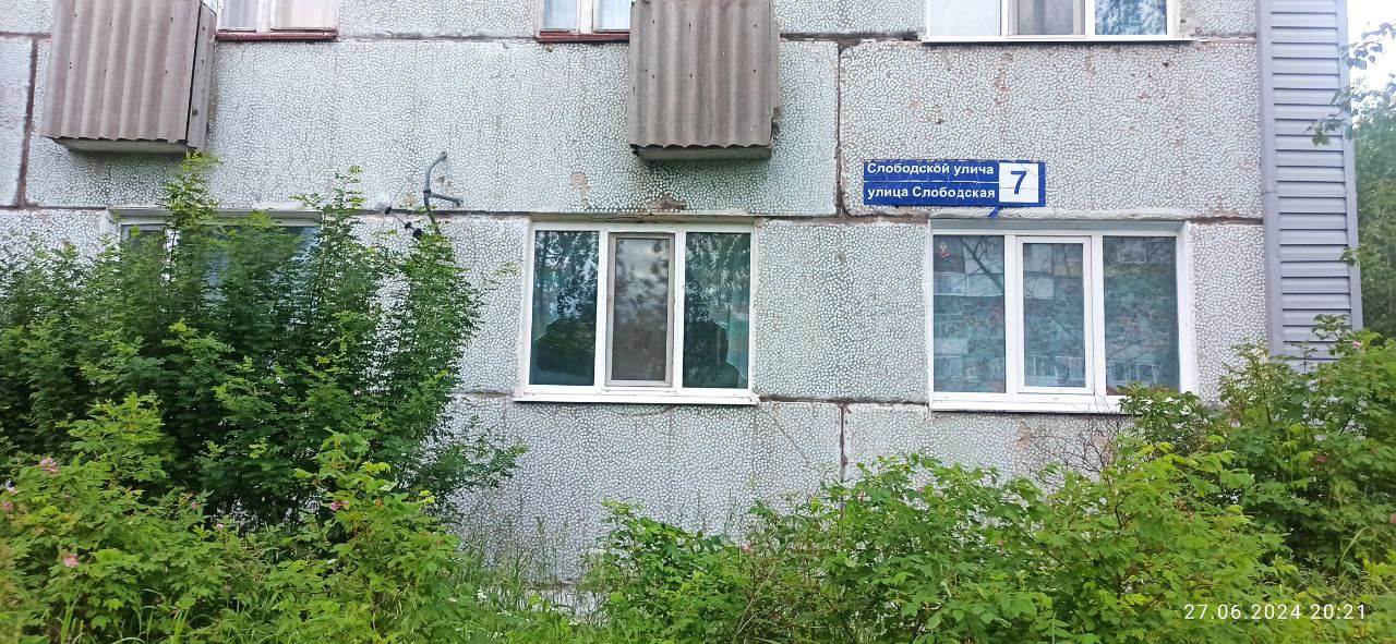Расположена по адресу: ул. Слободская, д. 7 1 этаж в 5-ти этажного панельного дома.
