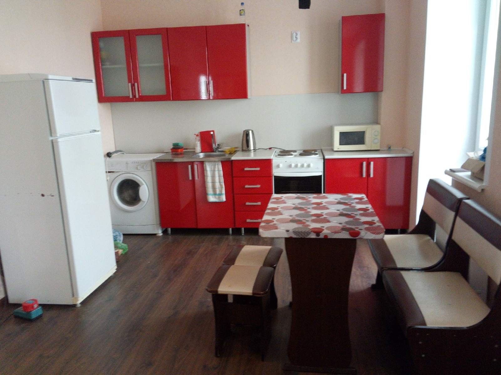 Сдается 2х комн. квартира+ кухня-студия. Частично меблированная. (1 комната- с мебелью, 2-я -частично, на кухне- диван). Семейной паре, на длительный срок.