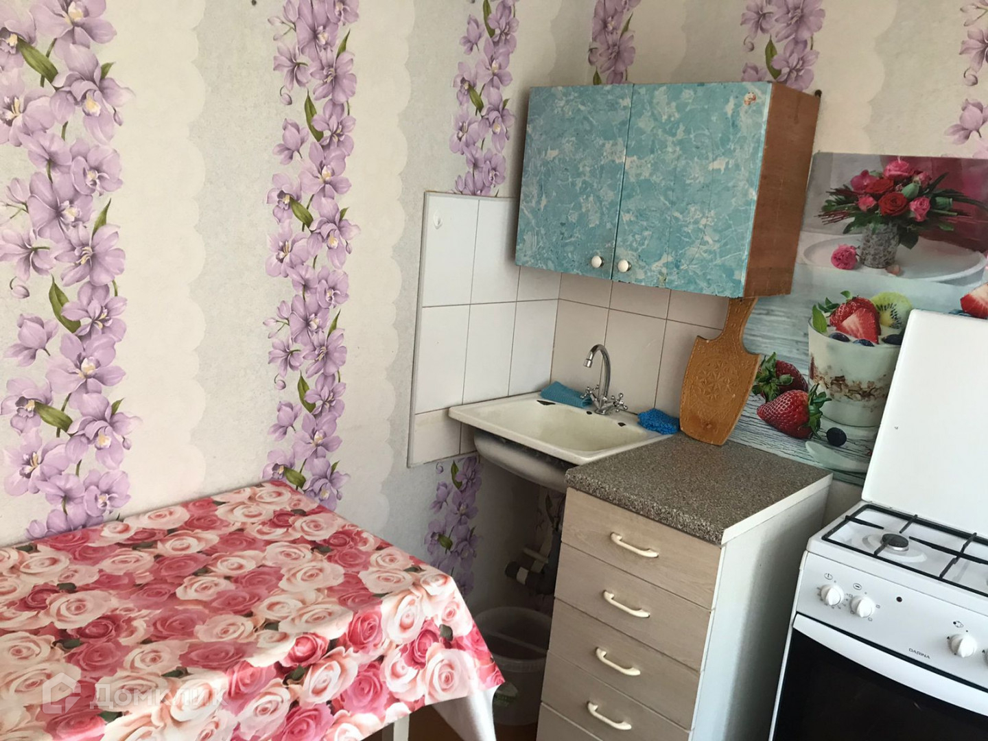 В квартире  холодильник, стиральная машина,  телевизор, шкаф, диван, кухня.