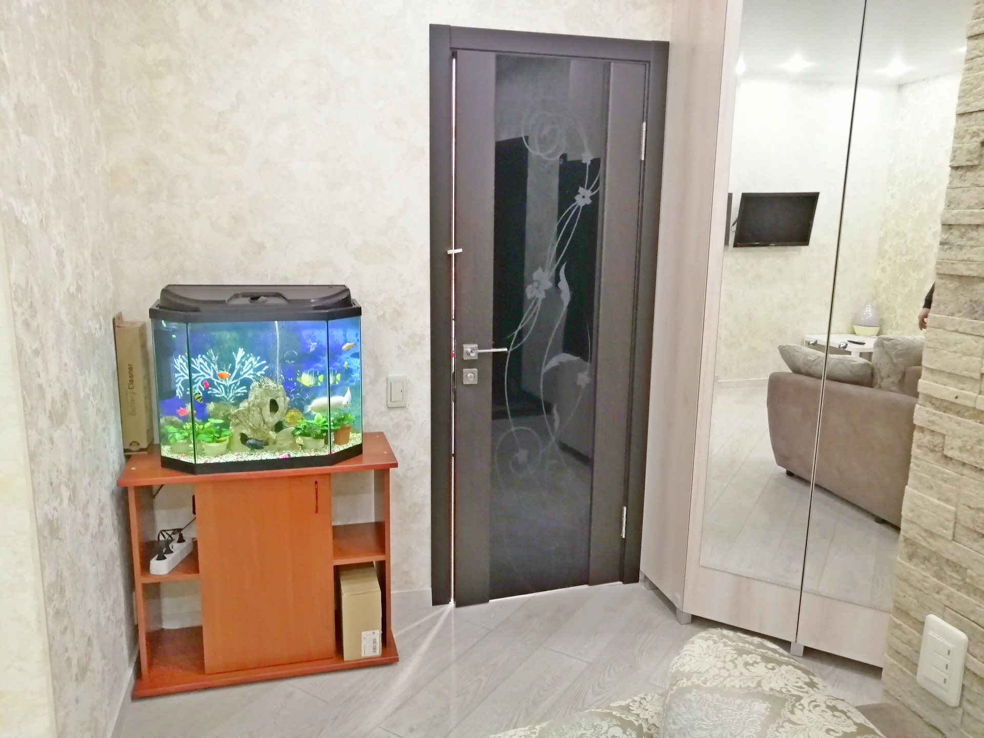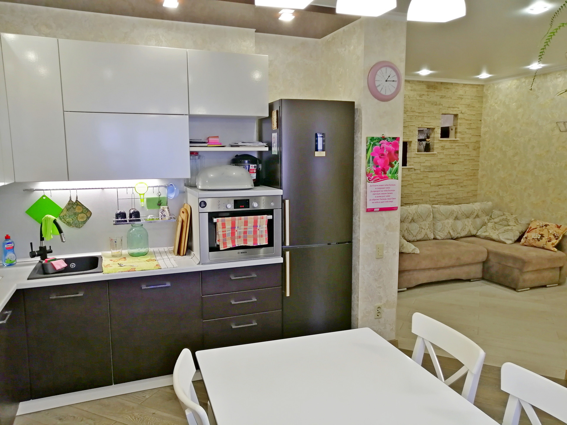 Сдается отличная квартира (евродвушка) ул. Мира, д. 45. Площадь 44 м², этаж 8/16 монолитного дома. Уютная, светлая с отличным дизайнерским ремонтом, делали для себя, поэтому использовали только качественные материалы, на полу дорогой ламинат, в прихожей теплые полы, везде натяжные потолки и качественные обои. Кухня сделана под заказ со встроенной техникой (электрическая варочная панель, вытяжка, морозильная камера, холодильник и духовой шкаф).