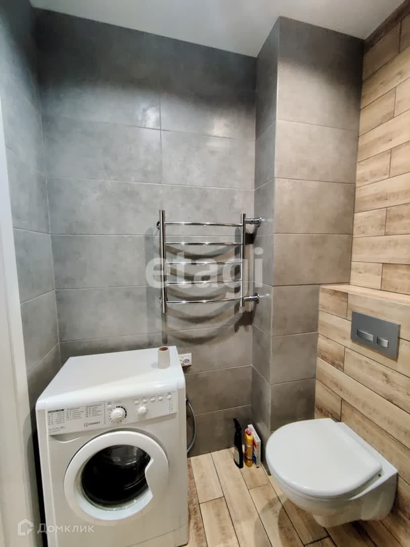 Есть все необходимое для проживания (диван, шкаф, кухонный гарнитур с варочной панелью, холодильник, микроволновая печь, электрический чайник, стиральная машина, кухонный стол со стульями, телевизор, посуда).