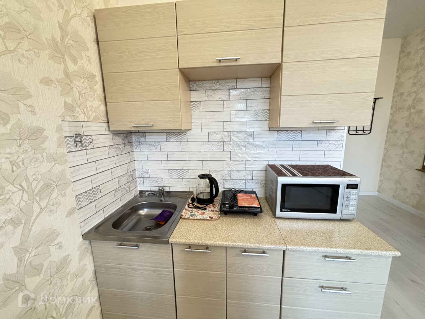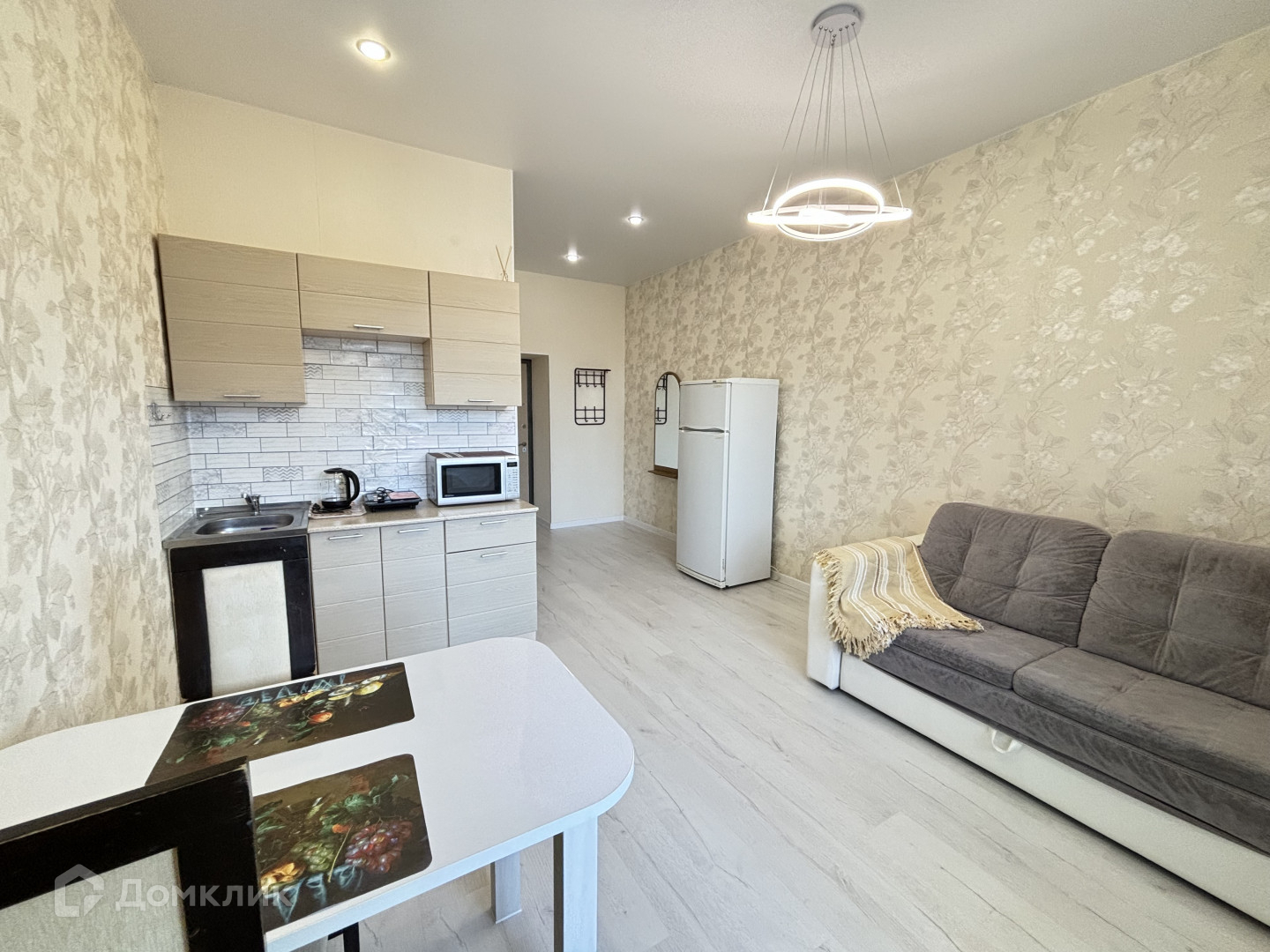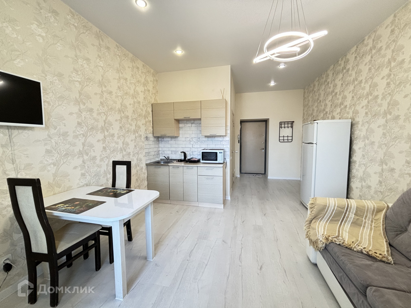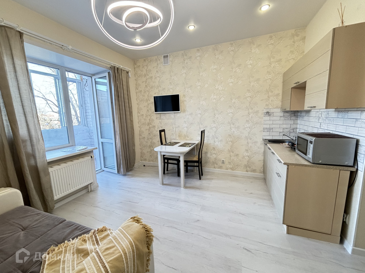 Дом жилой, кирпичный, 14 - этажный, имеются камеры видеонаблюдения. Дом расположен во дворе в дали от дороги. В студии сделан современный ремонт, ванна кафель, пол ламинат. натяжной потолок .