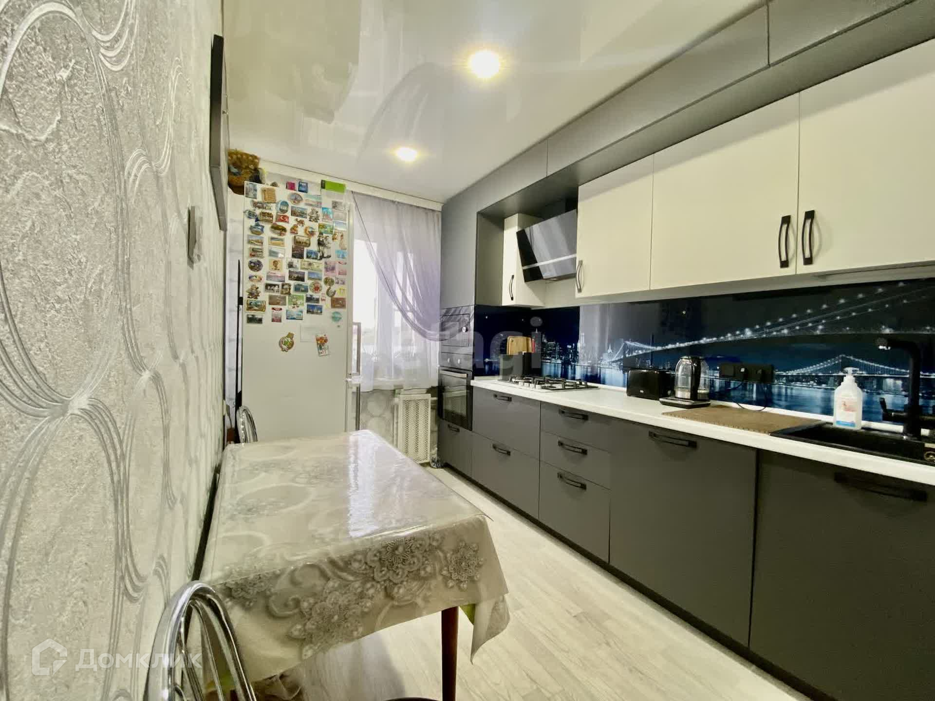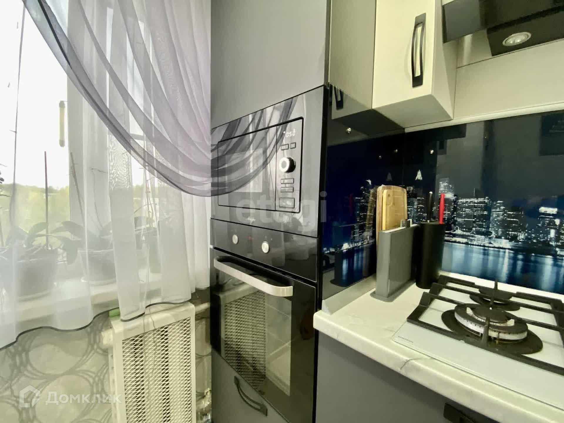 Две спальни, большой диван. Кухня оборудована встроенной духовкой, микроволновой, посудомойкой, есть подсветка по периметру кухни.