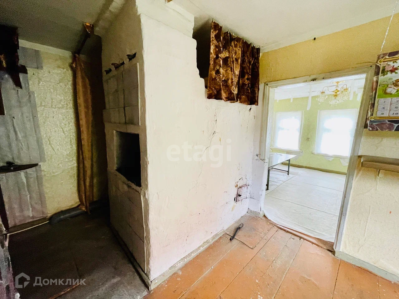 Дом отапливается печью из кирпича, которая и дом обогревает, и готовить на ней можно.