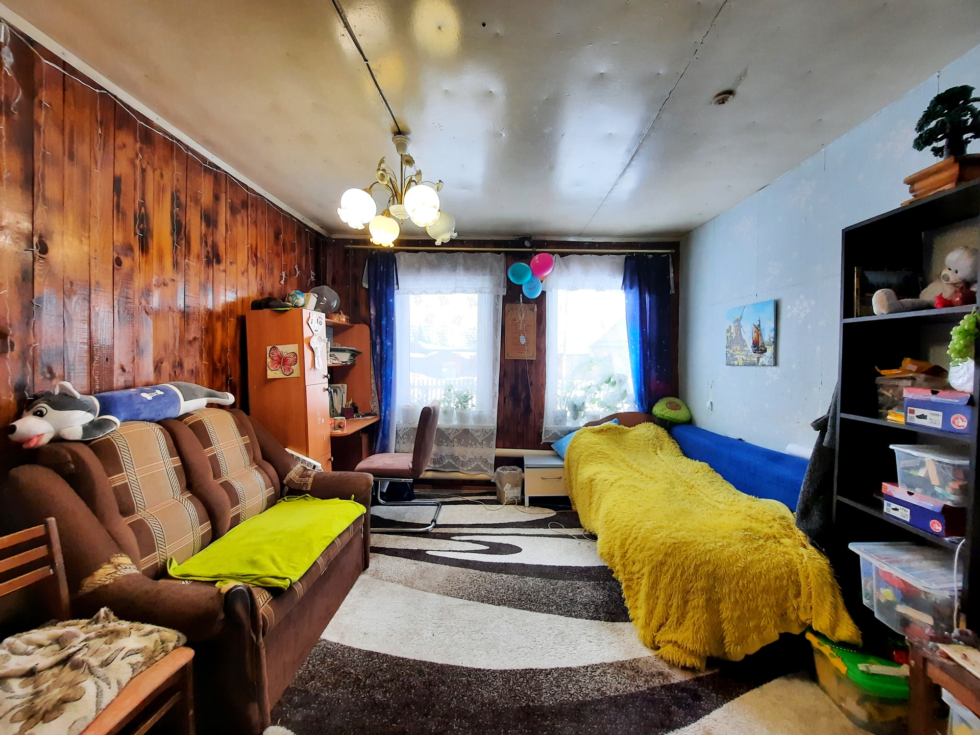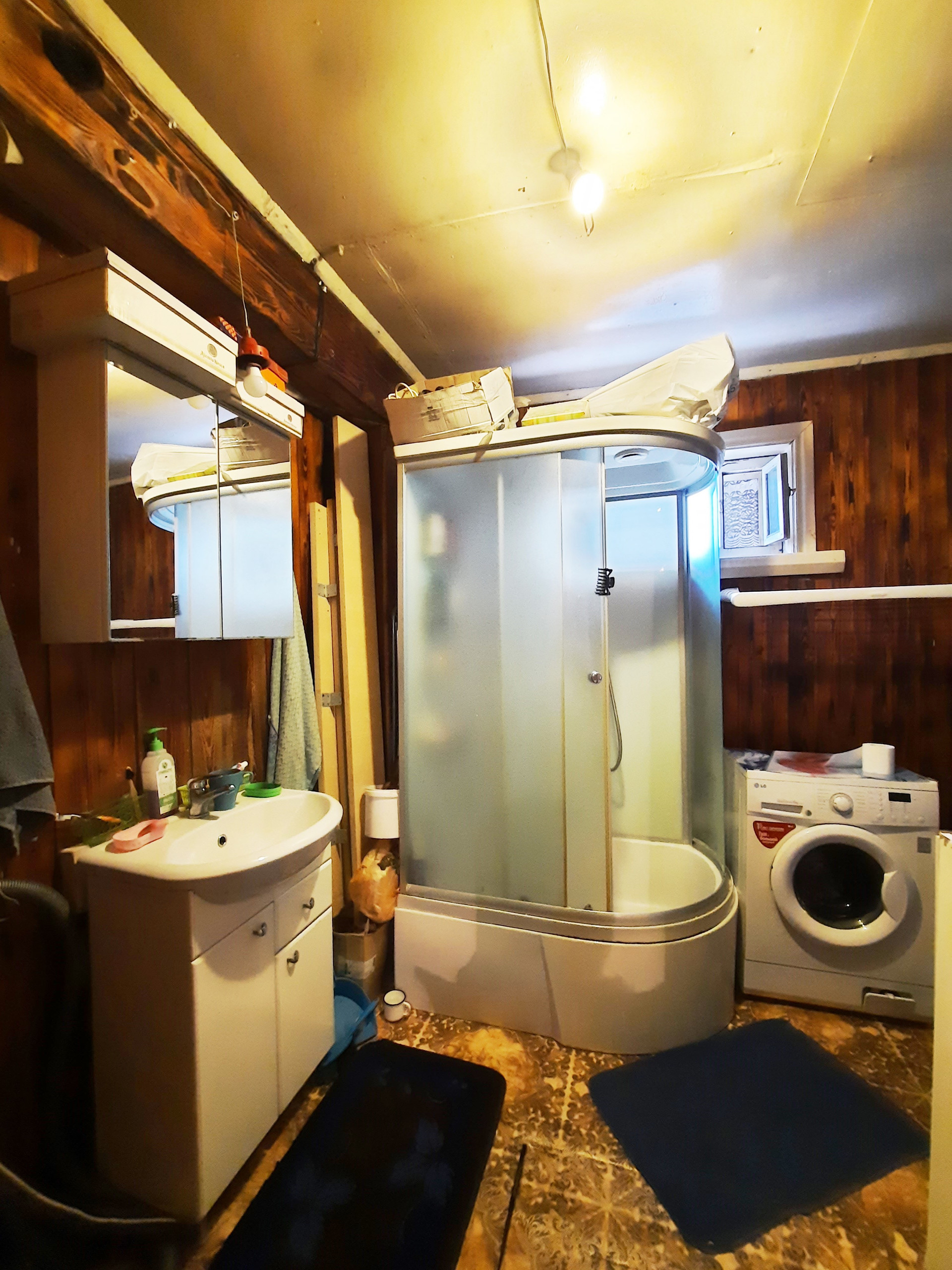 Планировка: большая зала 24,2 кв.м. (на 4 окна), уютная комната 8,4 кв.м., столовая 8,3 кв.м., кухня 5 кв.м., санузел 4,6 кв.м. (душевая кабина, раковина, унитаз), просторный коридор 9,8 кв.м. Два входа в дом (есть дополнительный выход в огород).