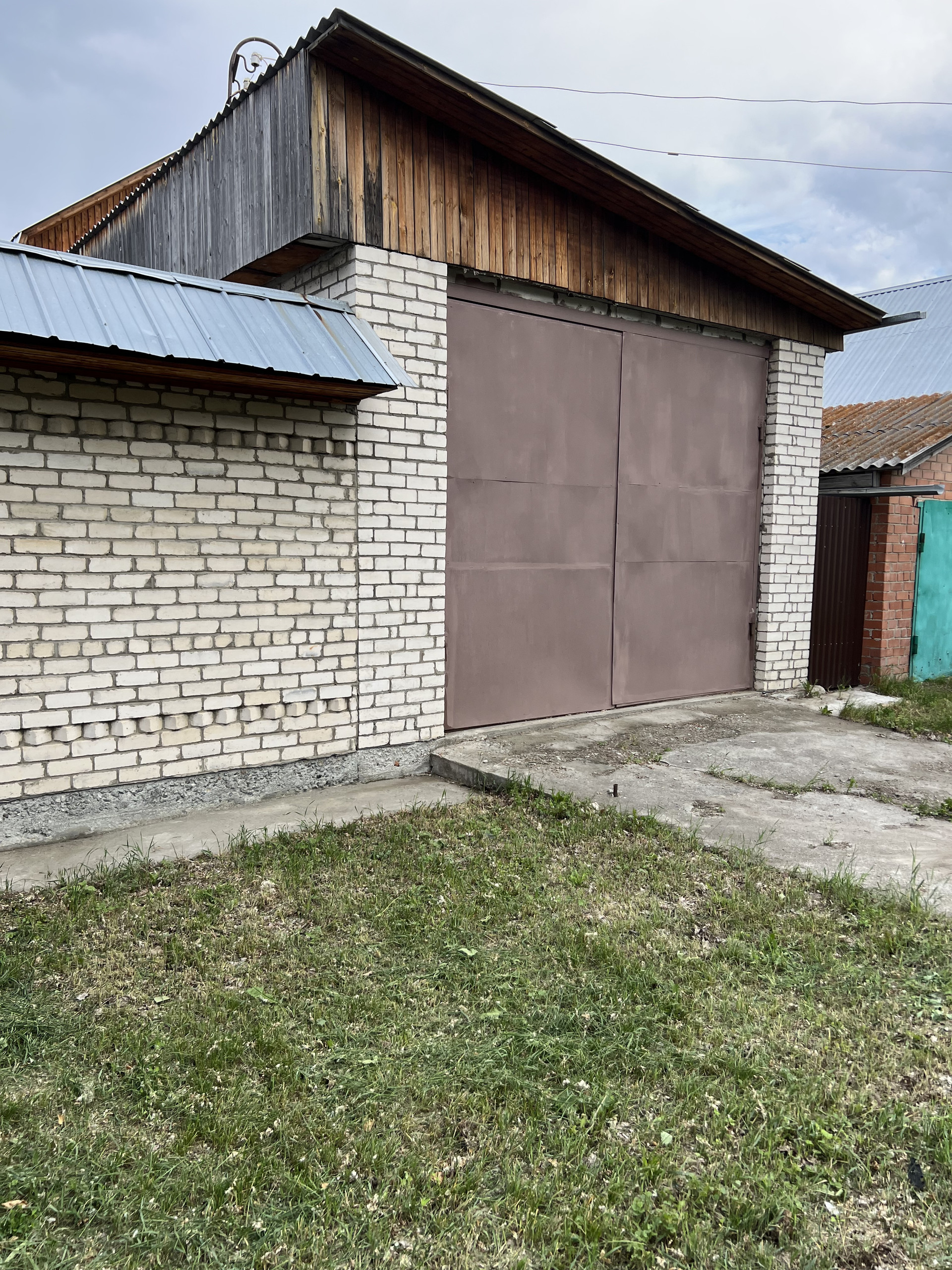 Большой гараж соединен с гостевым домом. Ворота под высокую машину сделаны.