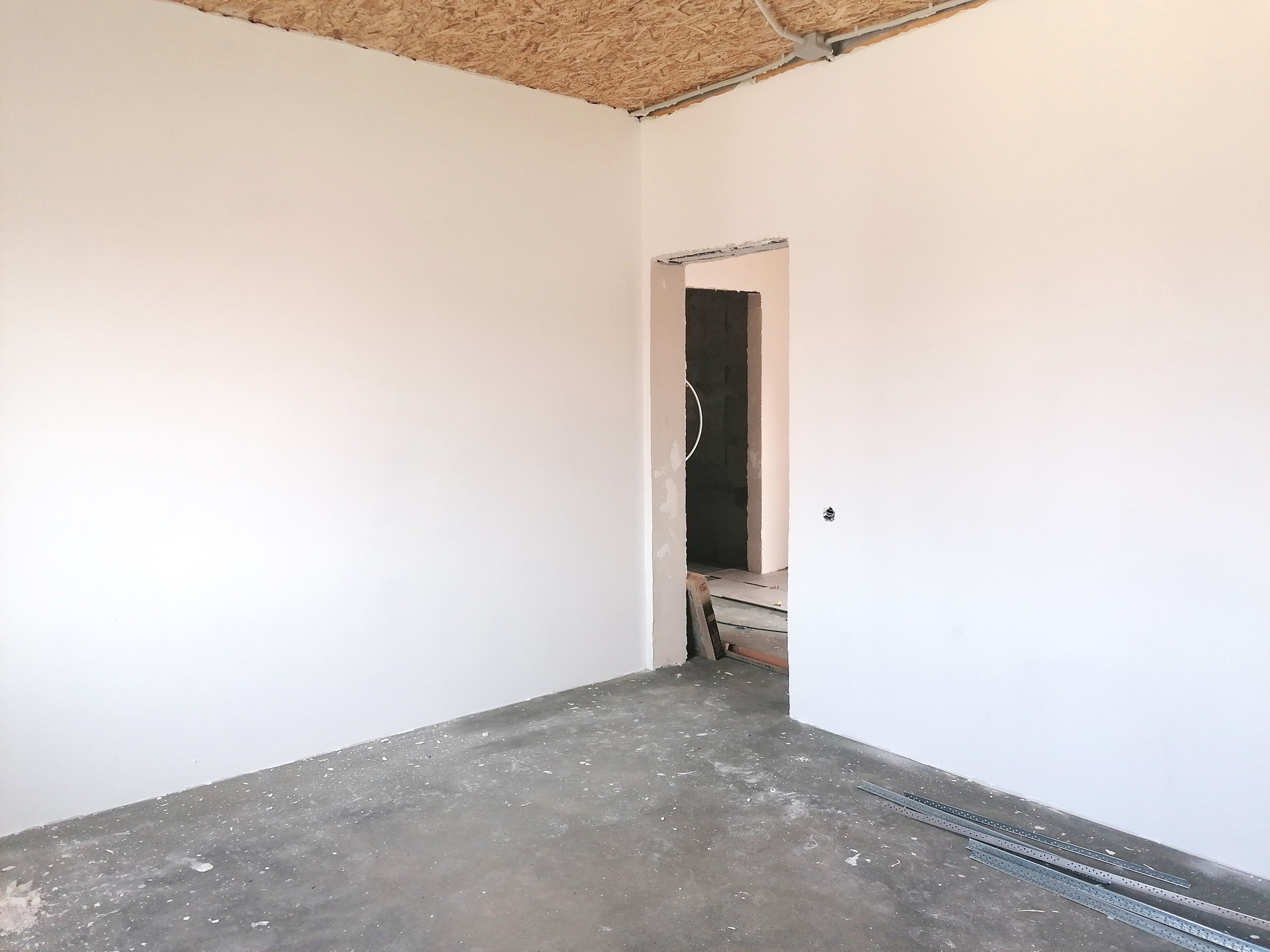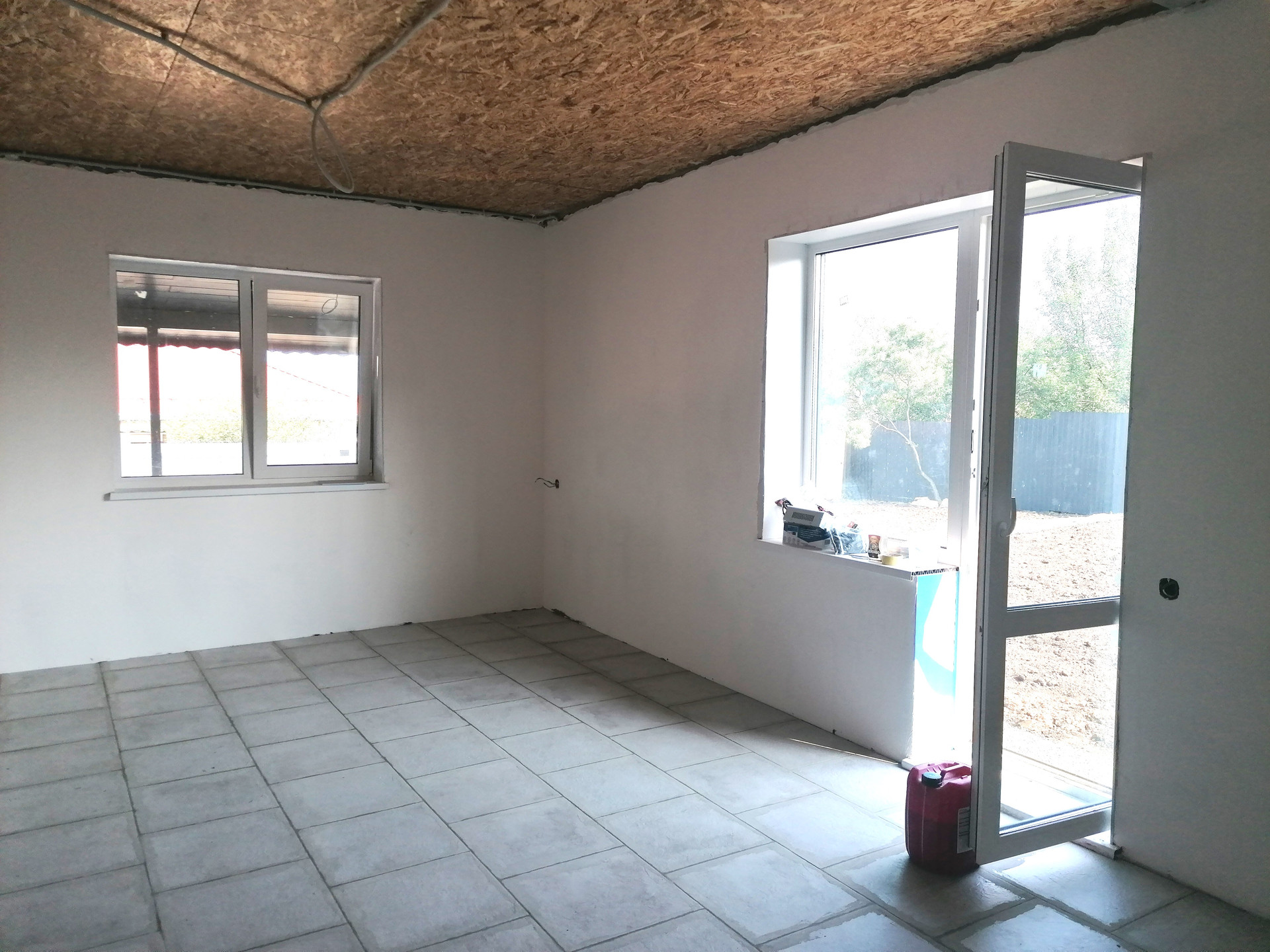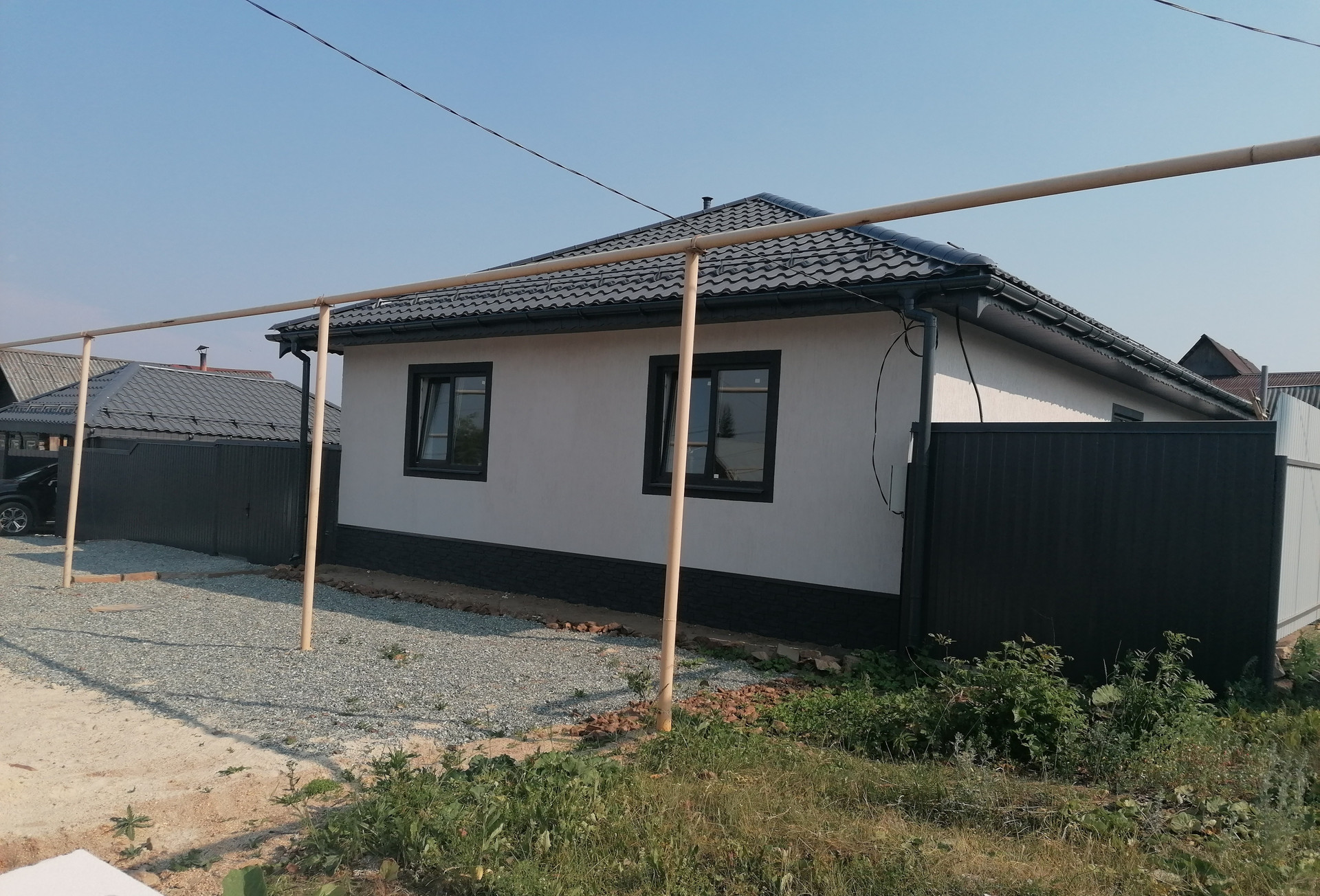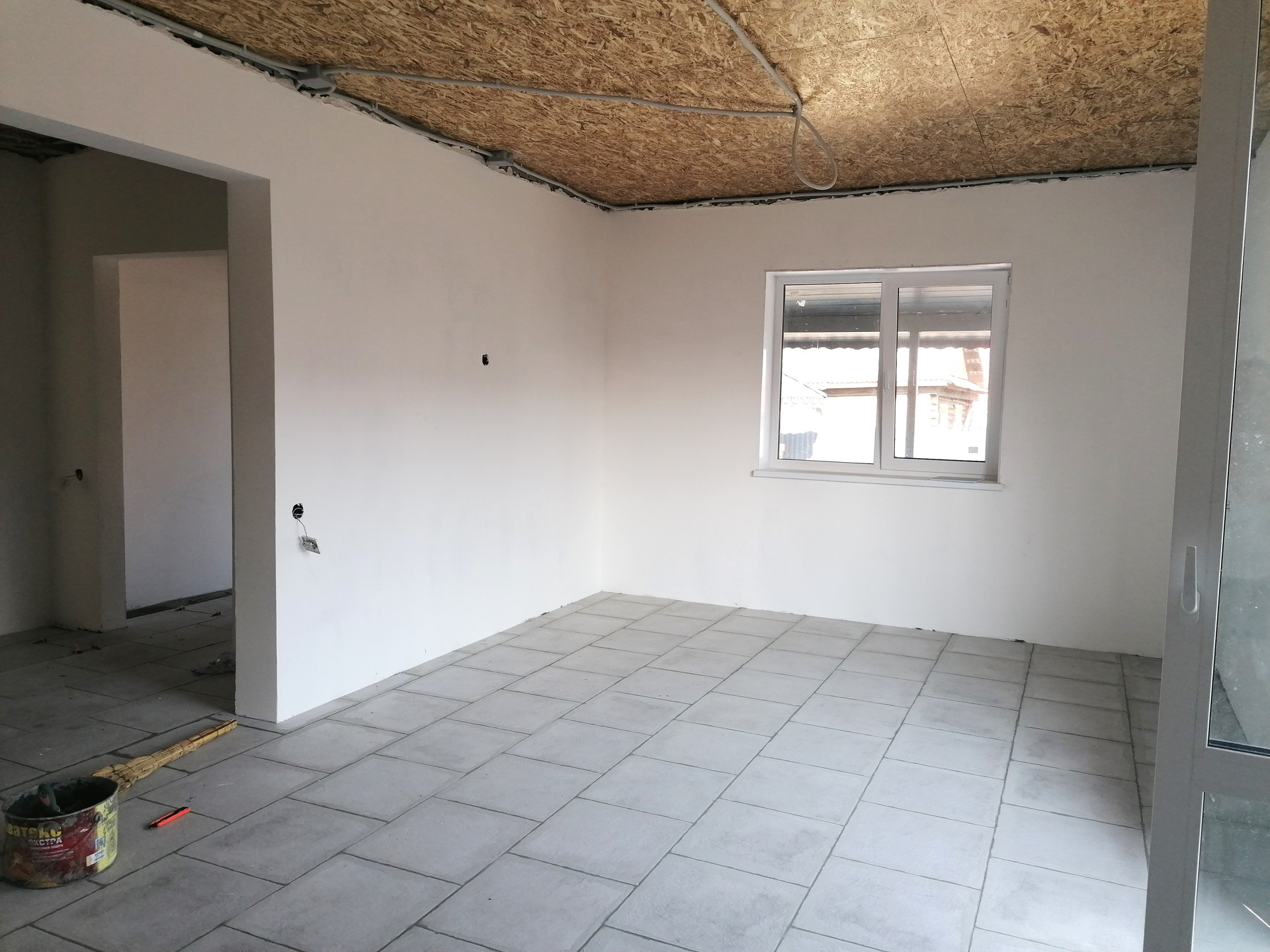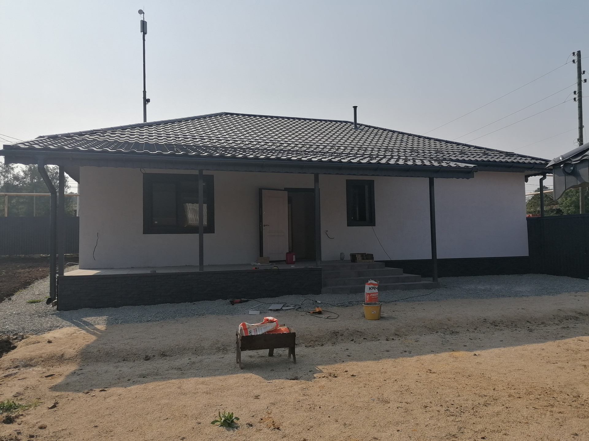 Уровень отделки дома под чистовую: стеклопакеты, хорошая сейф дверь, на полу стяжка (теплый водяной пол + плитка), разводка электричества по всему дому, в санузле разводка труб и канализации, стены оштукатурены (под покраску или обои).