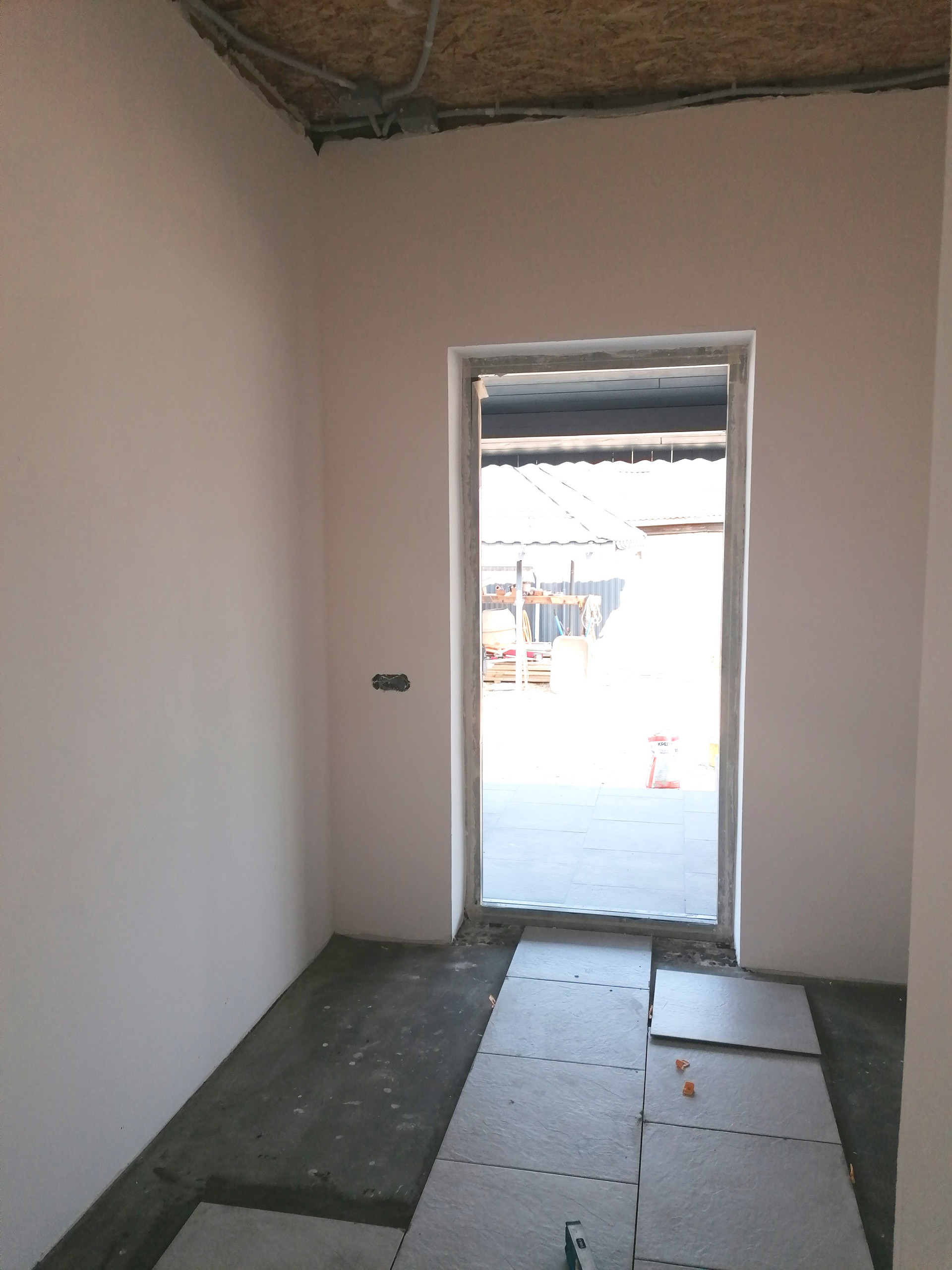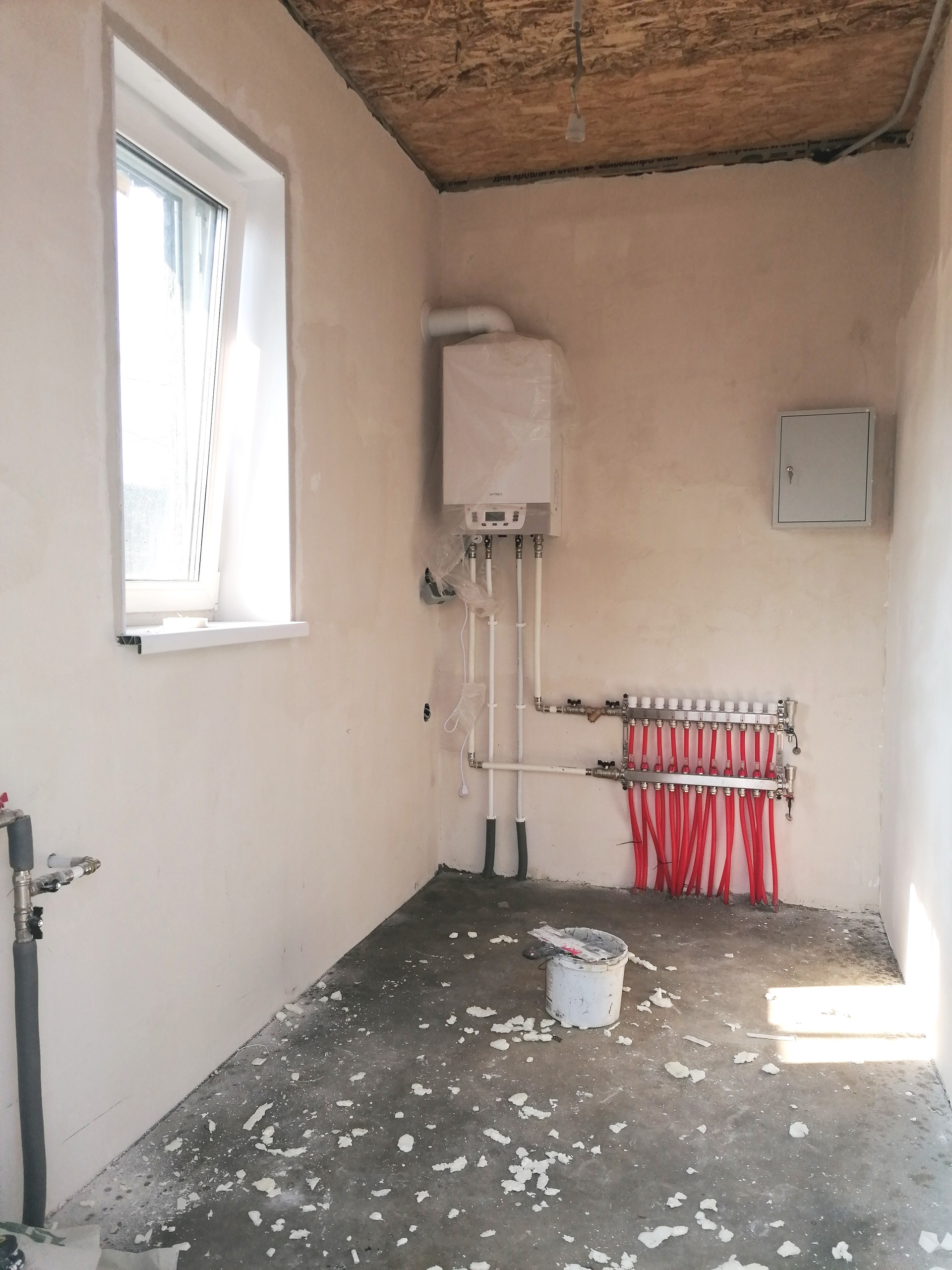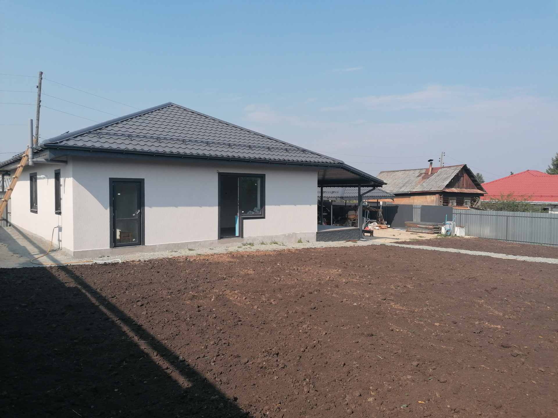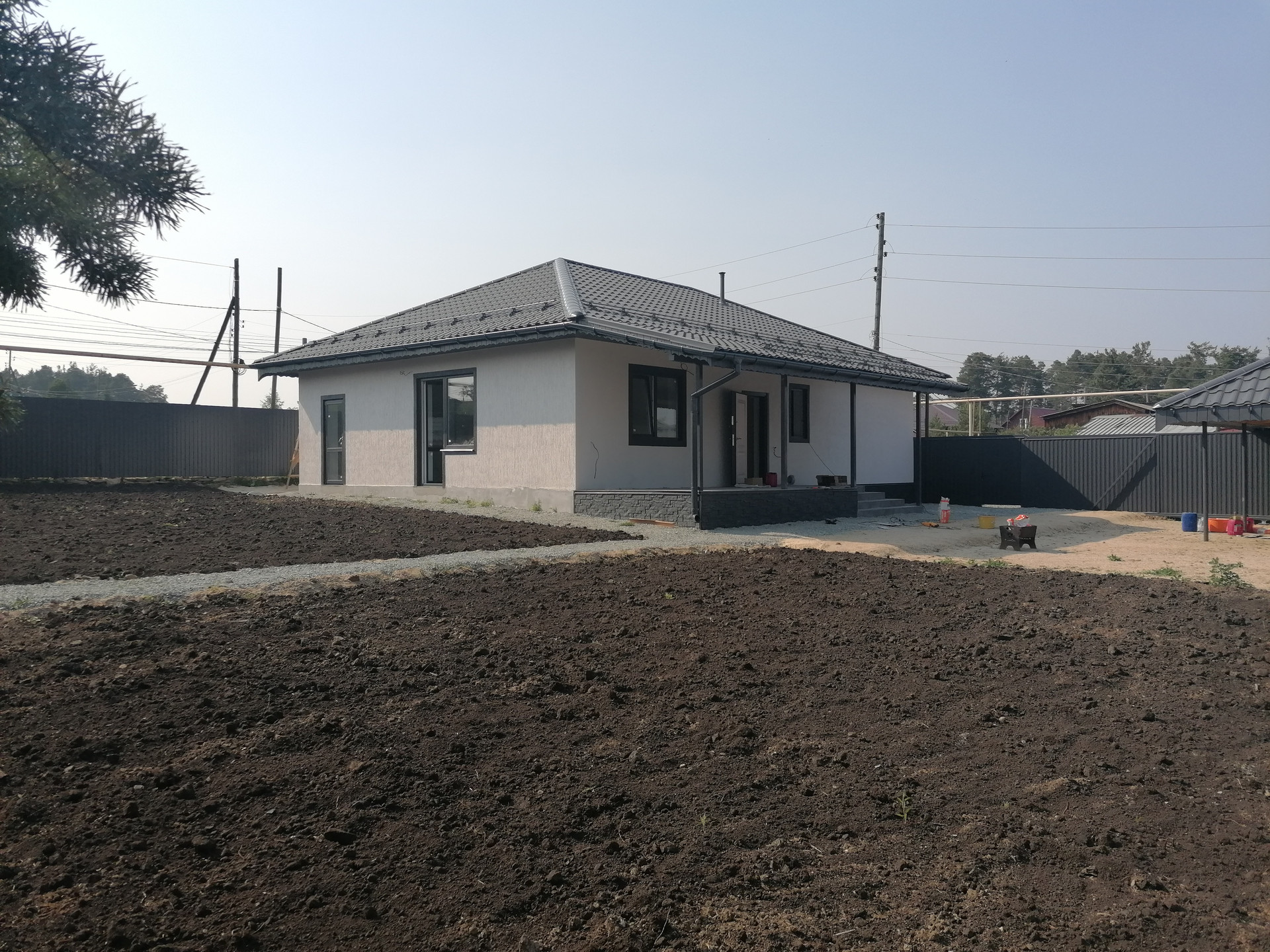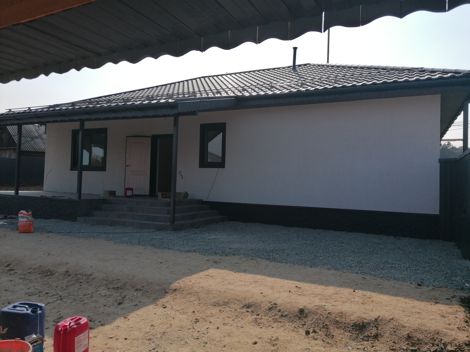 Уровень отделки дома под чистовую: стеклопакеты, хорошая сейф дверь, на полу стяжка (теплый водяной пол + плитка), разводка электричества по всему дому, в санузле разводка труб и канализации, стены оштукатурены (под покраску или обои).