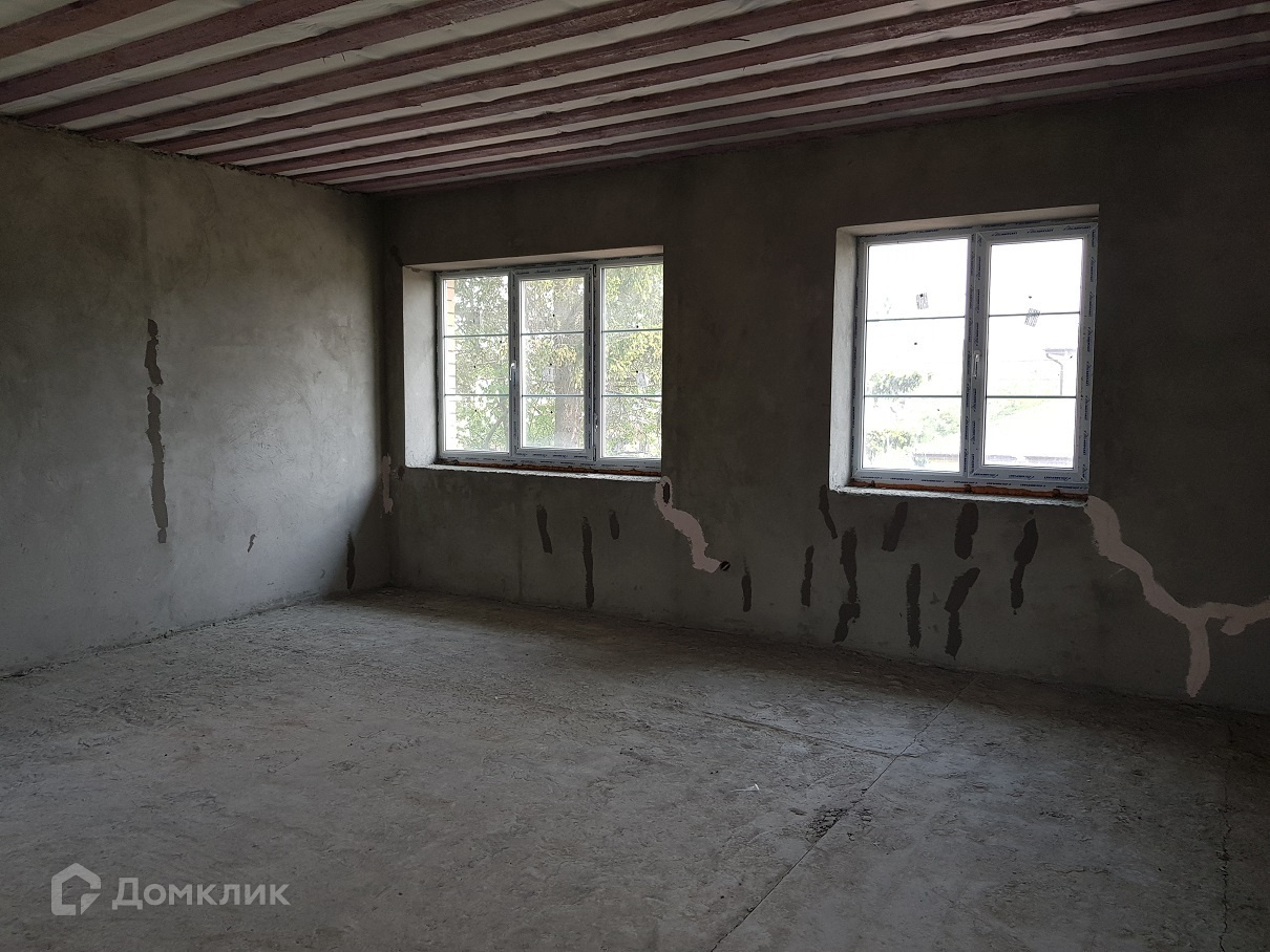 В доме четыре изолированных спальни и большая гостиная со вторым светом (высота потолков больше 6 м.), гараж с автоматическими воротами. Коммуникации: газ (подведен к дому), водоснабжение централизованное (городской водопровод), электричество разведено по дому (220 Вольт, 15 кВт), канализация автономная (выгребная яма). Внутри дом оштукатурен.