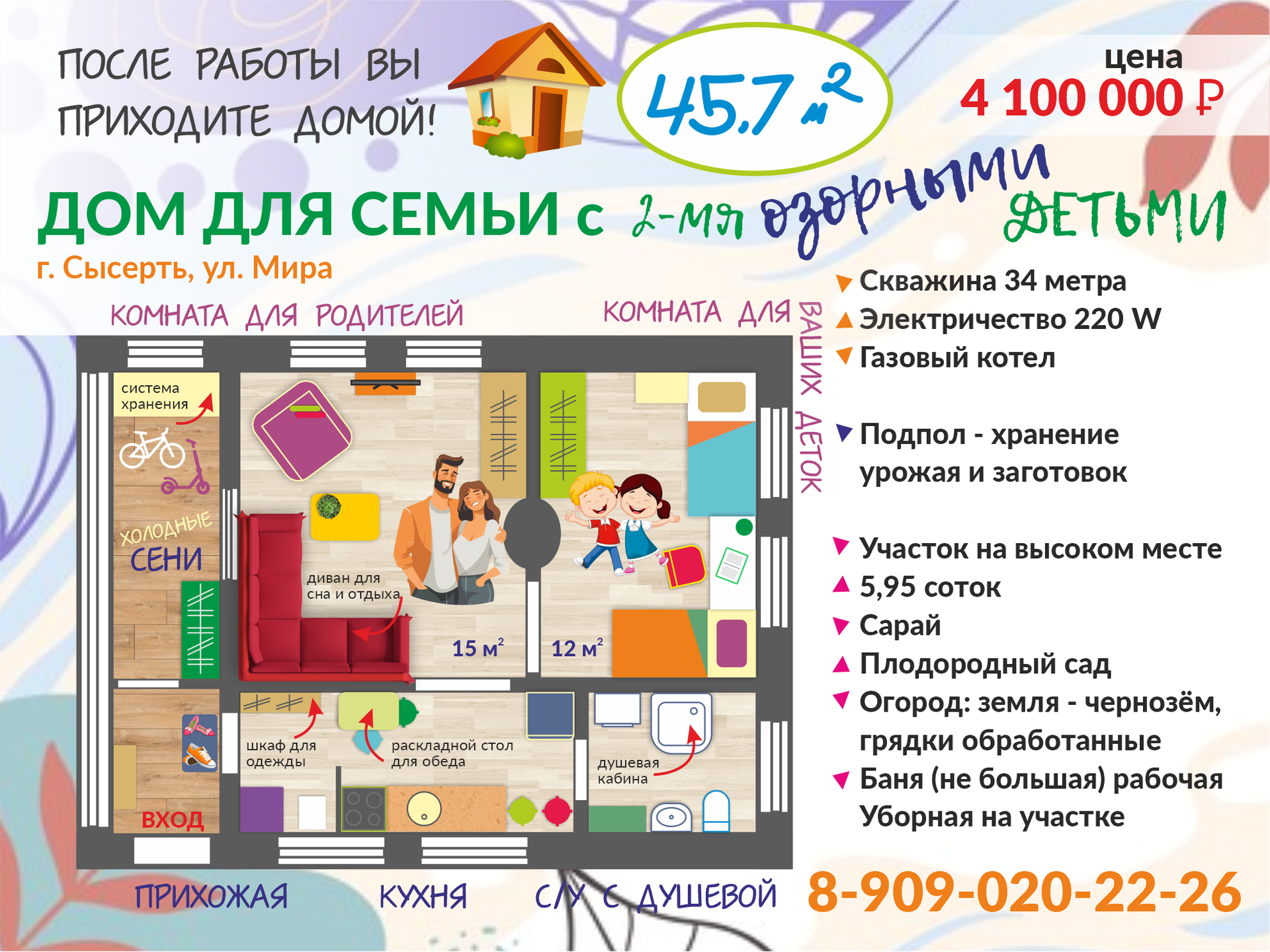 Дом для семьи м 2-мя озорными детьми