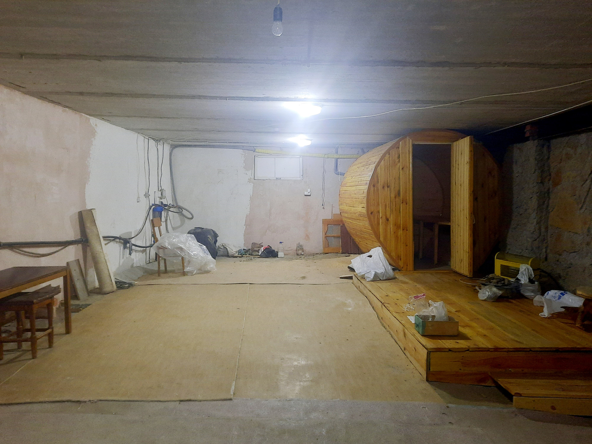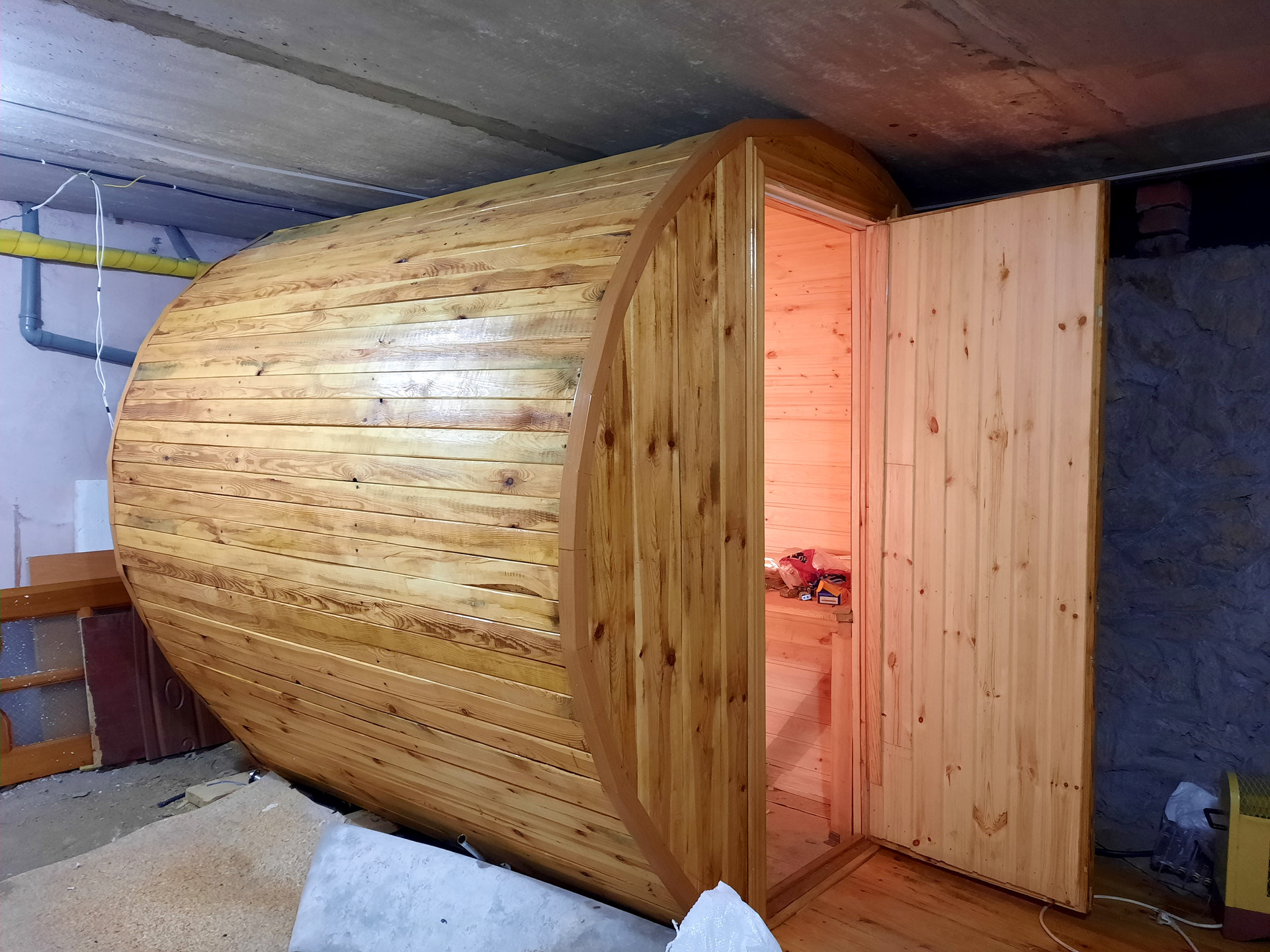 На 1 уровне расположены теплая прихожая, гараж. Здесь же имеется спуск в цокольный этаж с котельной и баней-бочкой.