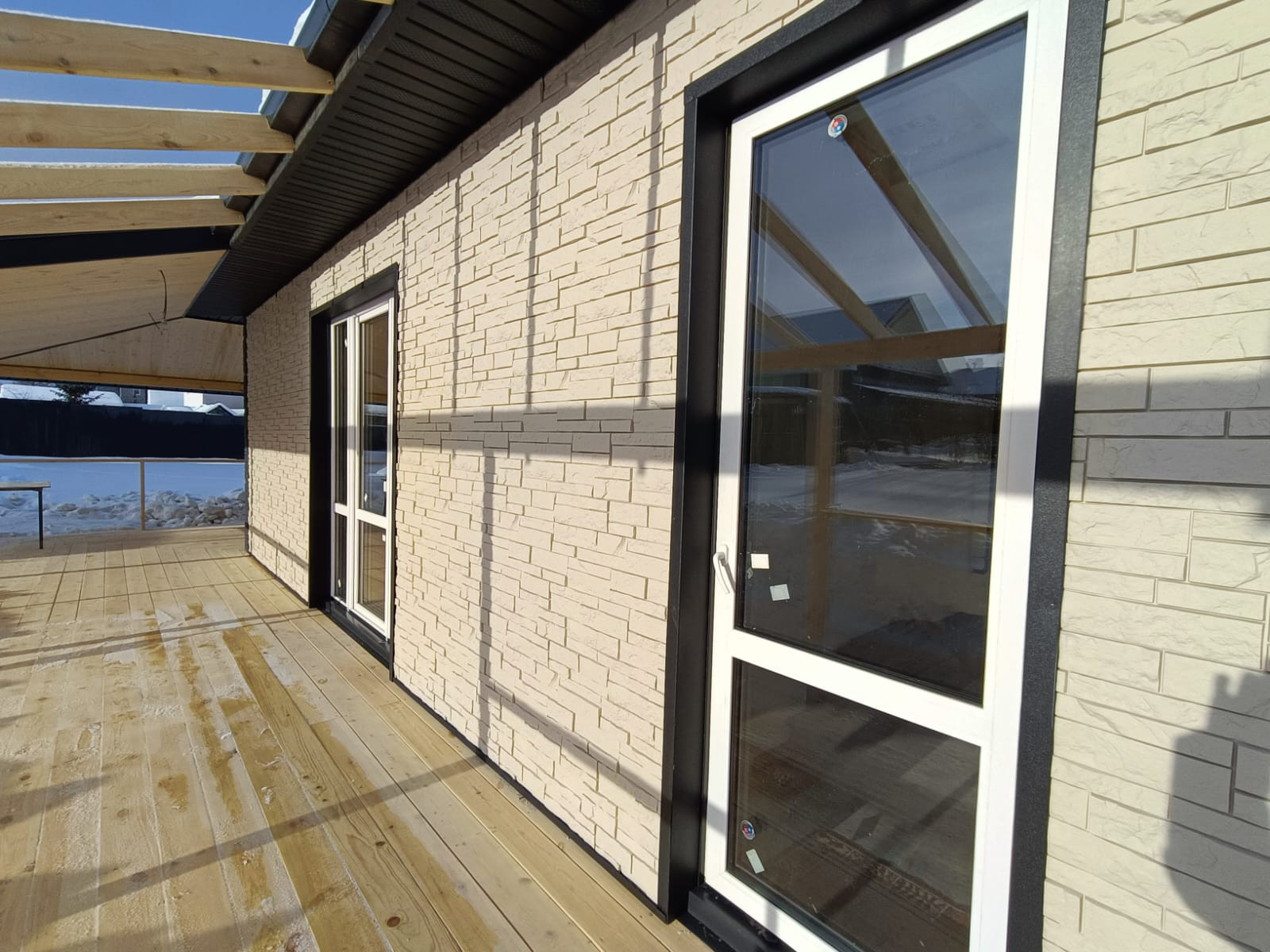 Новый дом  в г. Сысерть (Челябинское направление) площадью – 103,8  кв м, на участке 8,4 соток. В доме три спальные комнаты и кухня-гостиная. Перед домом веранда. Откатные ворота.