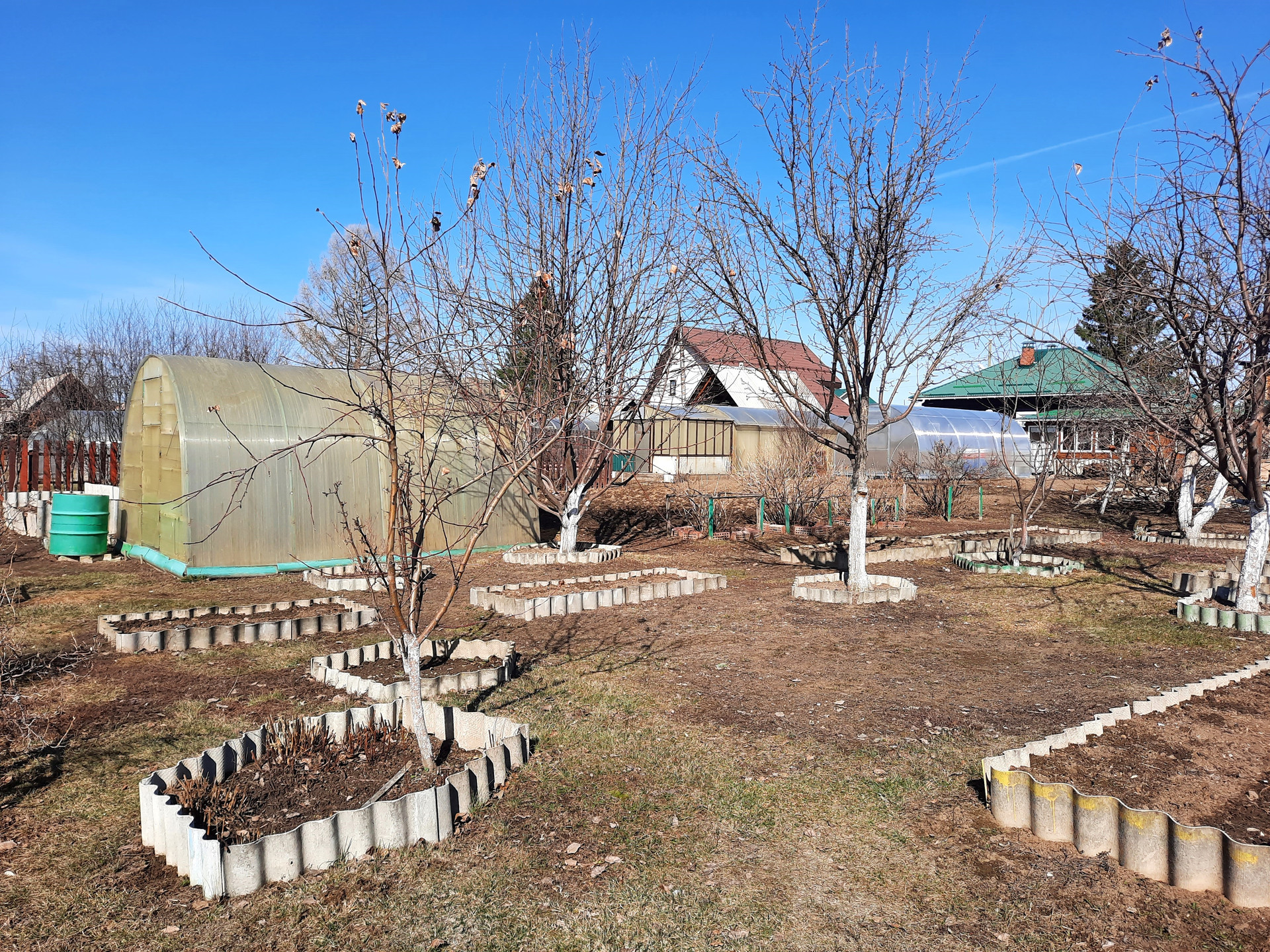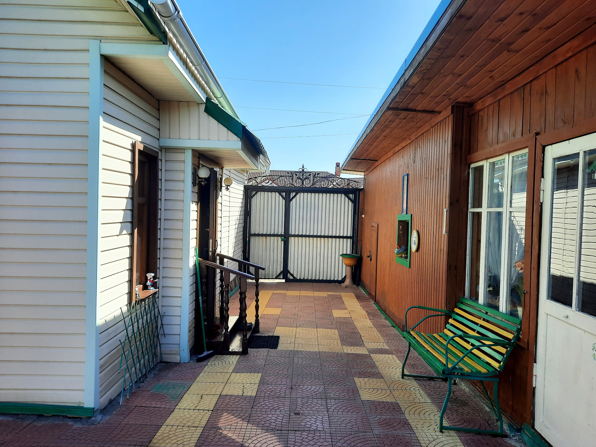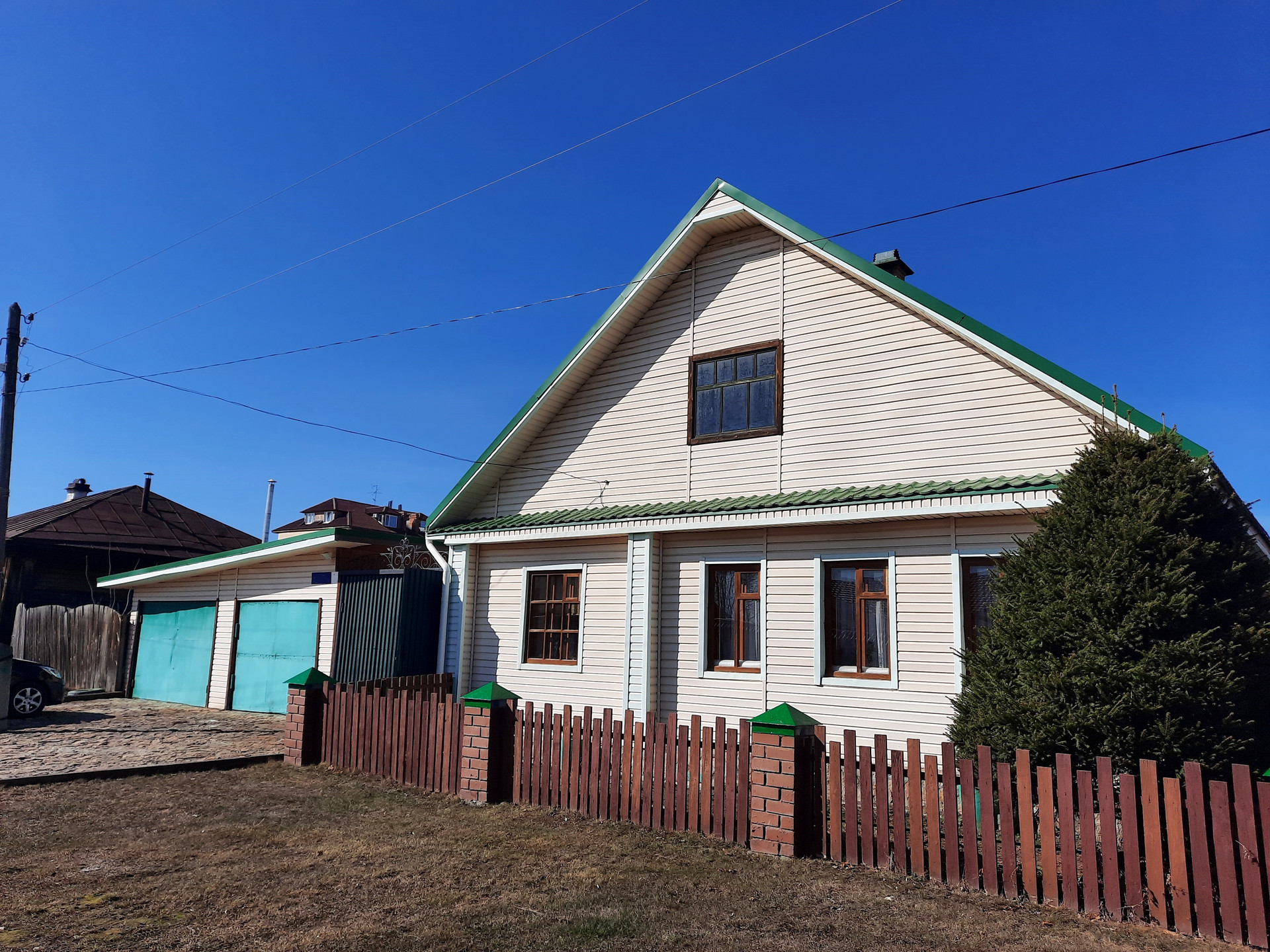 Имеется два капитальных гаража. Уютная летняя веранда. Баня. Ухоженный двор: вымощен плиткой, посажены декоративные кусты, многолетние цветы. Участок разработан: разбиты грядки, есть теплицы, много плодоносящих деревьев (груши, яблони, вишня, смородина и др.).