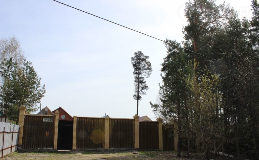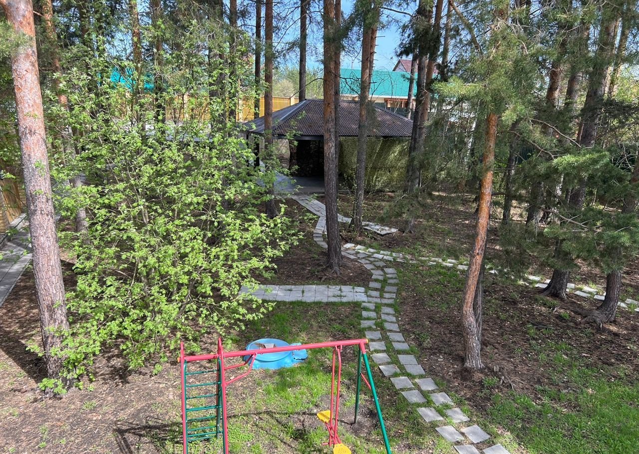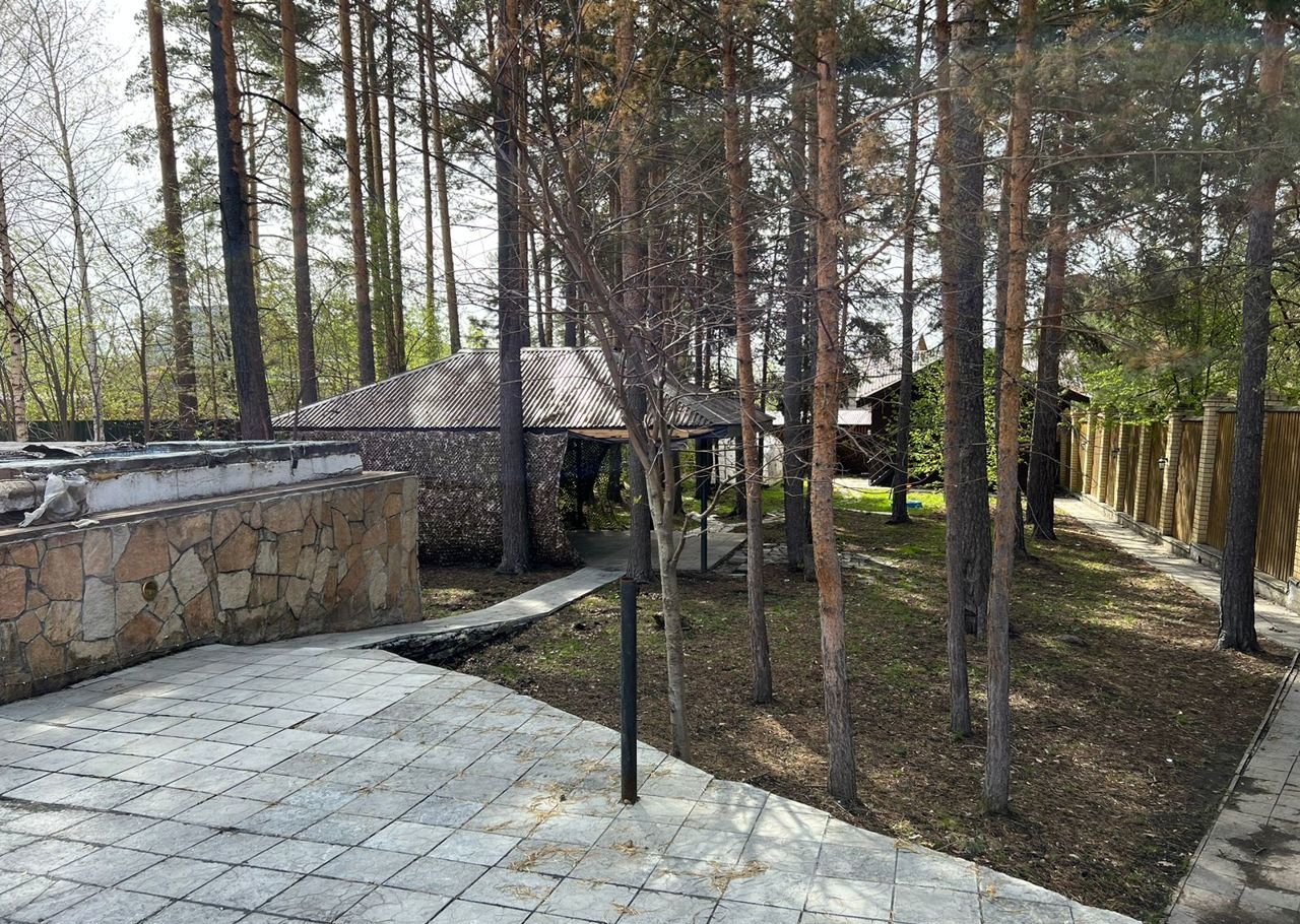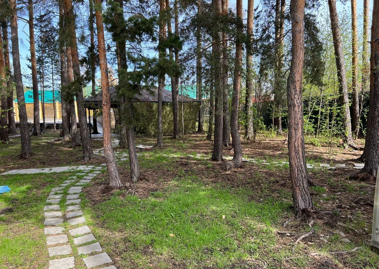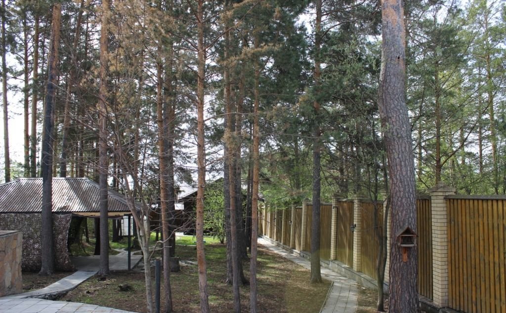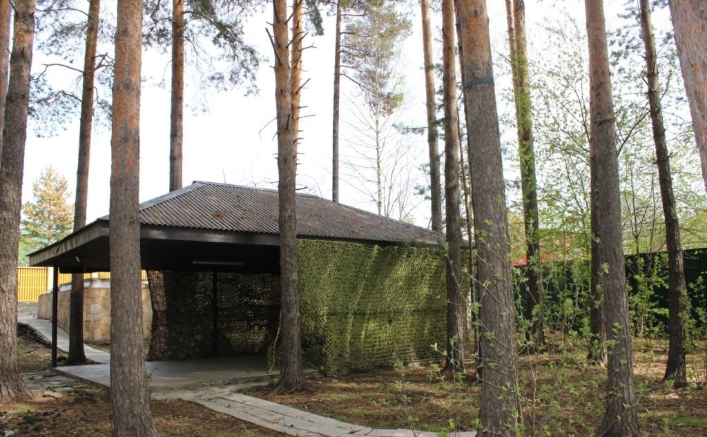 на участке - теплица, сосны, беседка - зона барбекю,