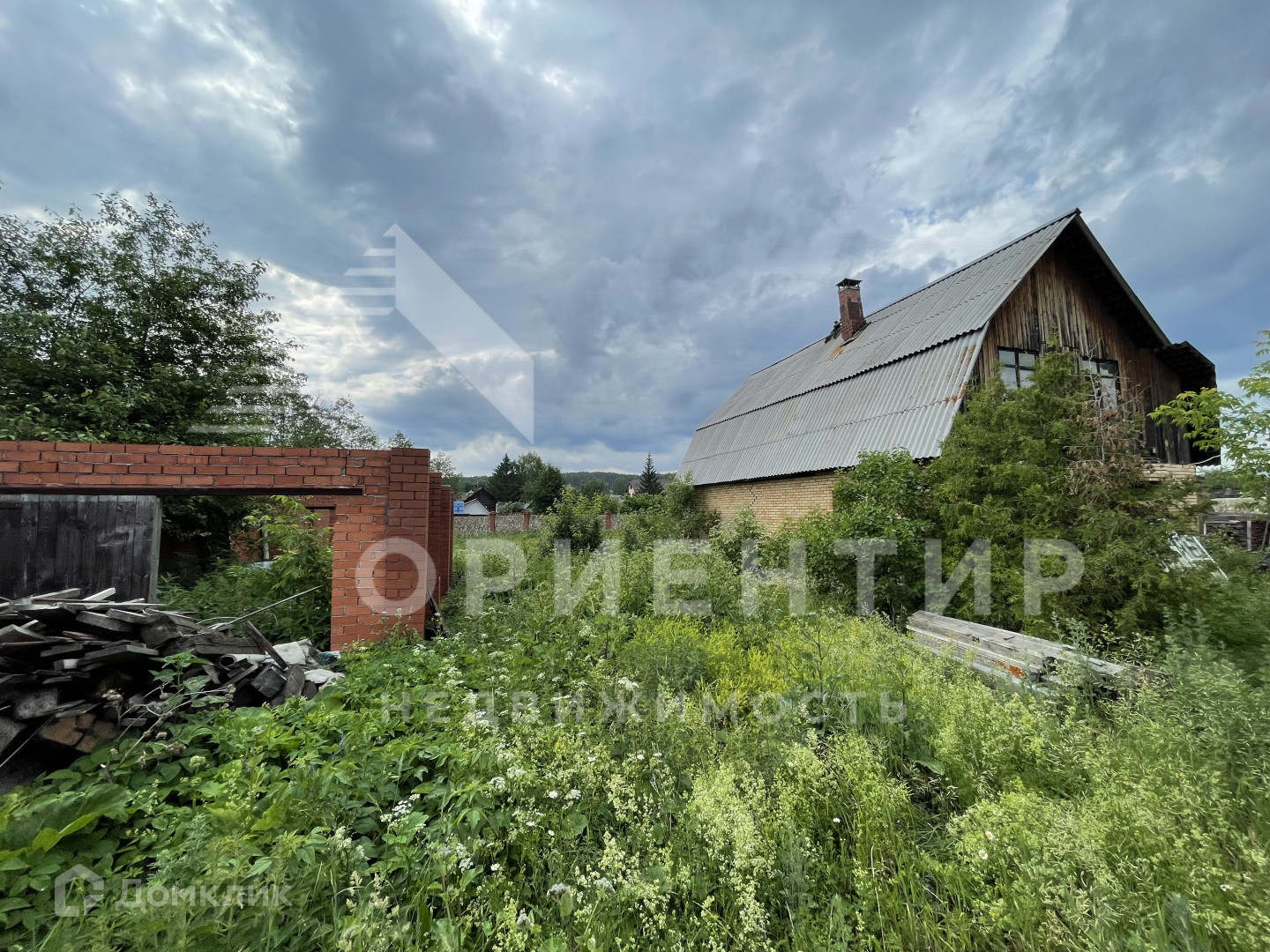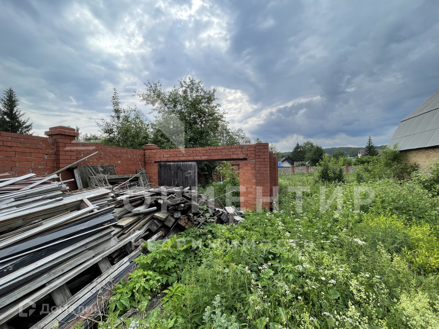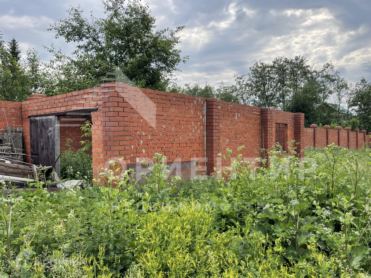 На участке есть постройка для будущего гаража и мастерской.