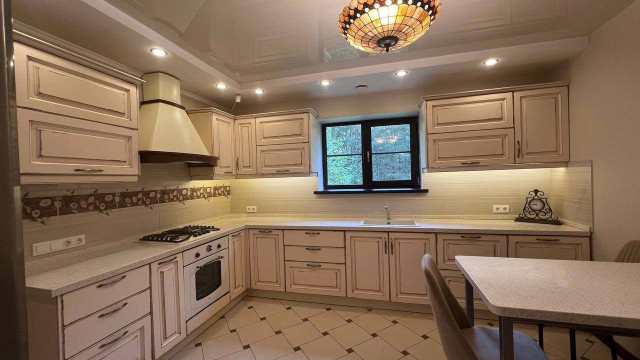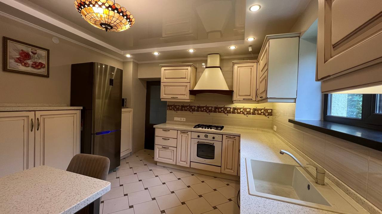 -Кухня со  встроенной техникой ( варочная панель, духовой шкаф и посудомоечная машина) Whirlpool, холодильник и стиральная машина Samsung.