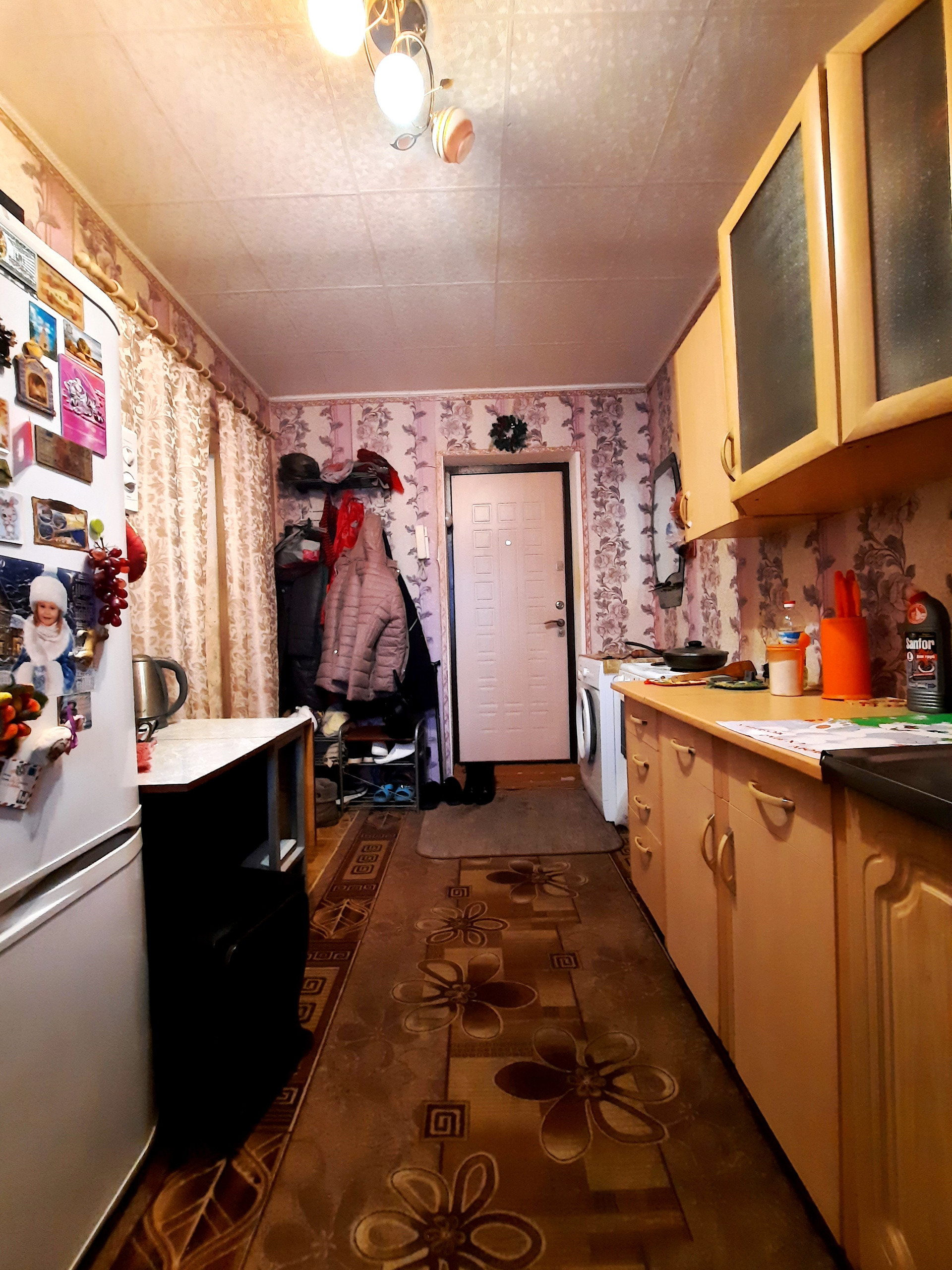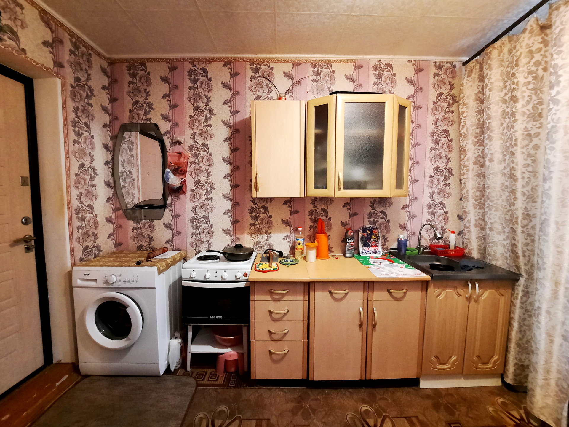 Установлены пластиковые окна, сейф-дверь, счетчик на холодную воду, водонагреватель, есть свой отдельный счетчик на электроэнергию. Остается кухонный гарнитур (остальная мебель по договоренности).