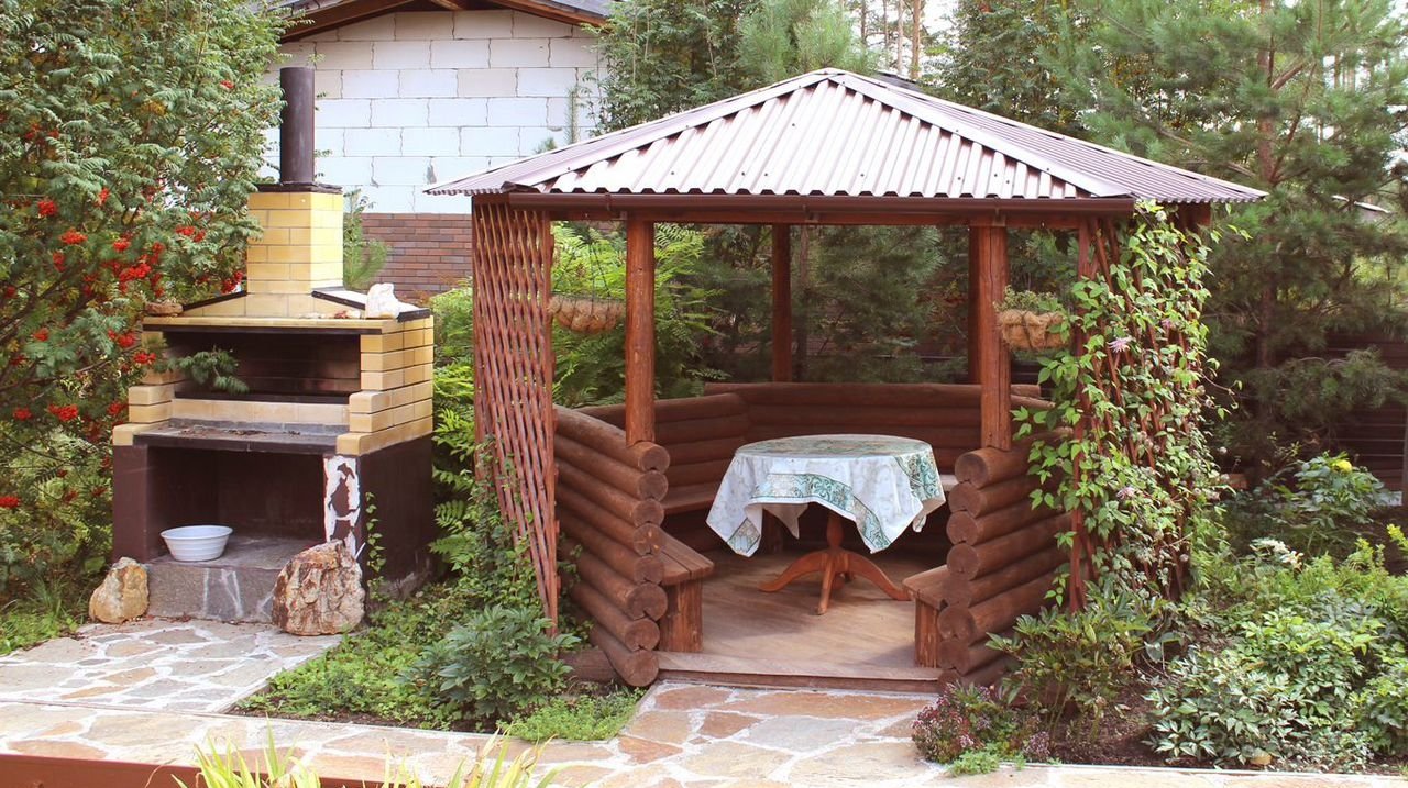 - Зона барбекю с беседкой