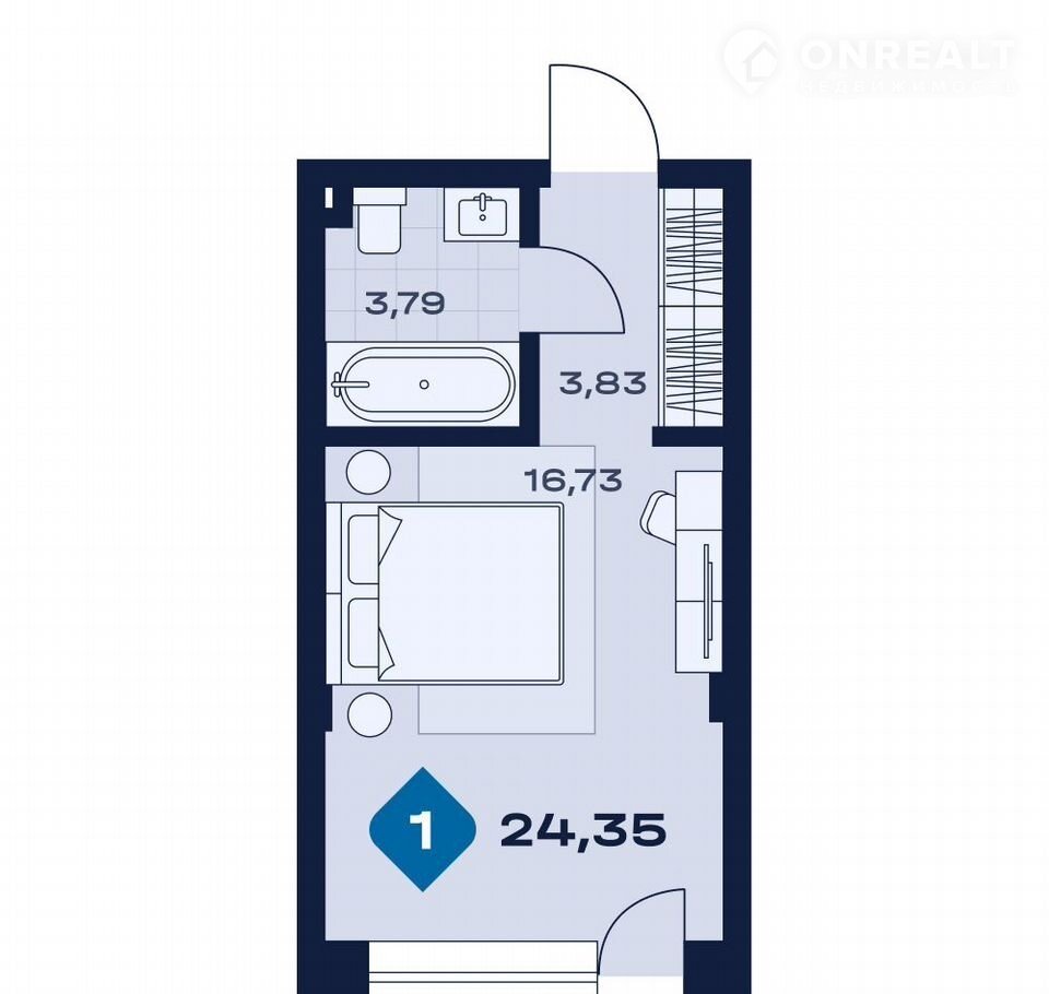Общая площадь 24.4 м2