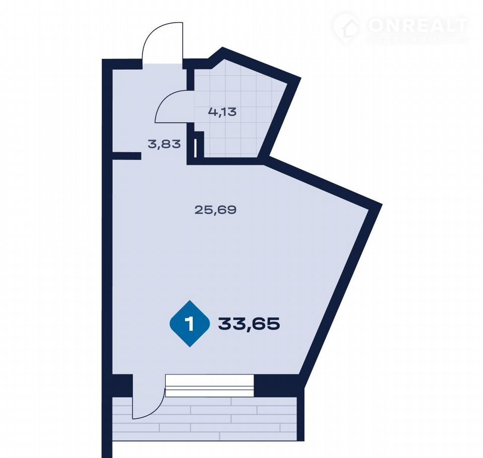 Общая площадь 33.7 м2