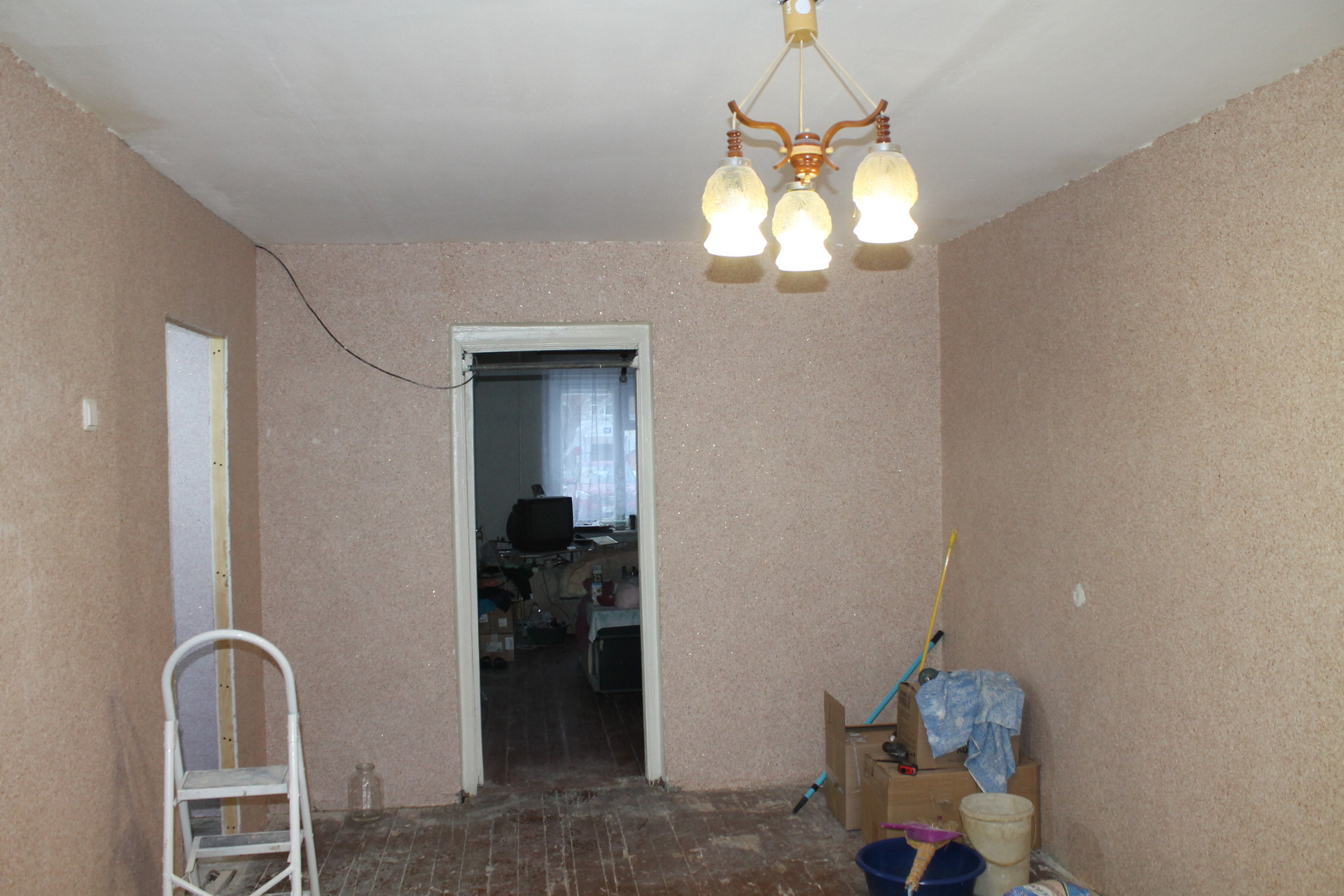 - в квартире начат ремонт – выровнены потолки, в комнатах и коридоре жидкие обои, новая входная дверь, в кухне пластиковое окно;