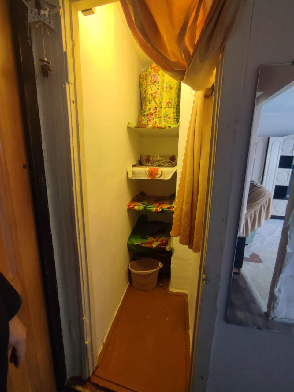 В квартире комната, кухня, совмещенный с/узел, застекленный балкон, кладовка, которую можно обустроить под гардеробную.