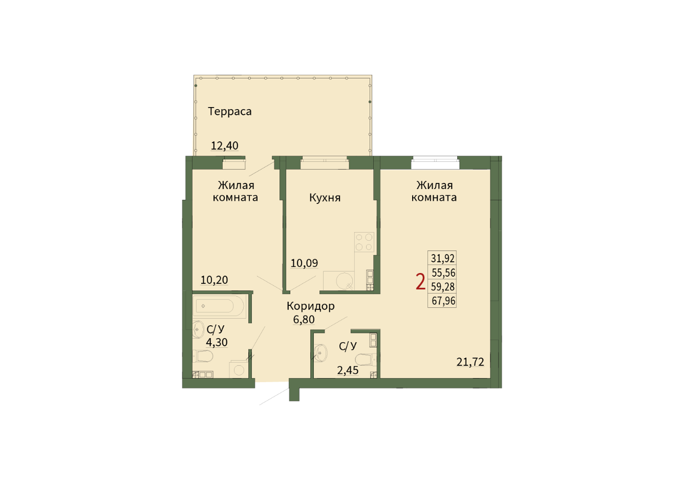Общая площадь 59.28 м2