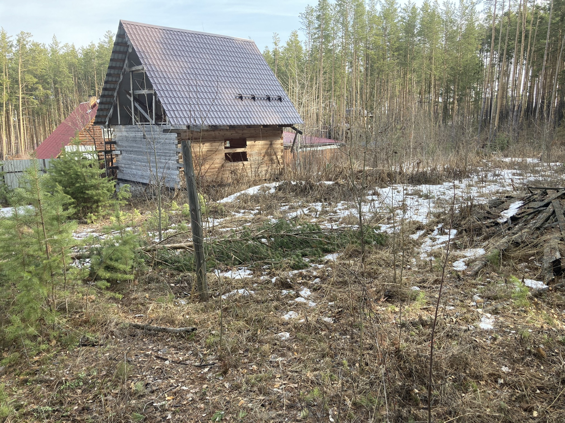 На участке стоит баня на бетонном фундаменте с предусмотренным каркасным этажом 6\6 электричество 380,скважина 50 метров, канализация 10 кубов. Все вопросы по телефону.