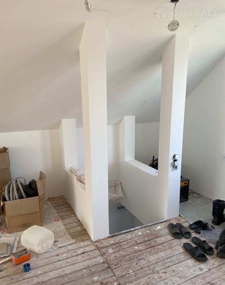 Мансарда площадью 43,7 м2 - помещение свободной планировки с высотой потолков от 1,6 до 2,42 м. и французским балконом, выходящим во внутренний двор. Выведены коммуникации под устройство санузла.