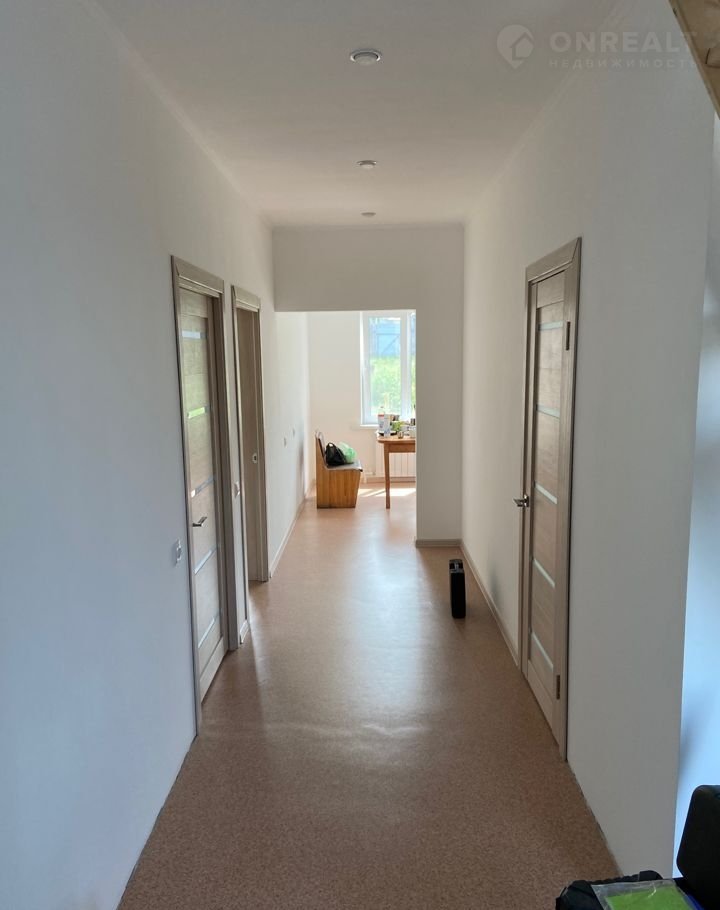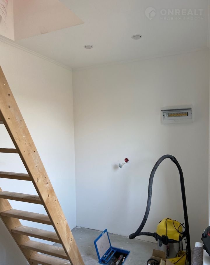 На первом этаже все потолки и стены зашпаклеваны и покрашены, на полу (за исключением небольшой части в прихожей) линолеум, на прихожую так же куплен (планировалось постелить после монтажа лестницы), межкомнатные двери установлены, лестница на мансарду только "черновая".