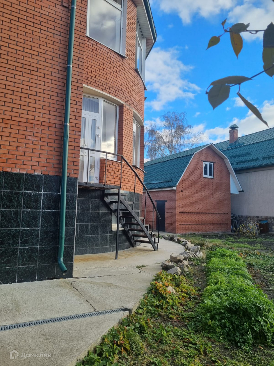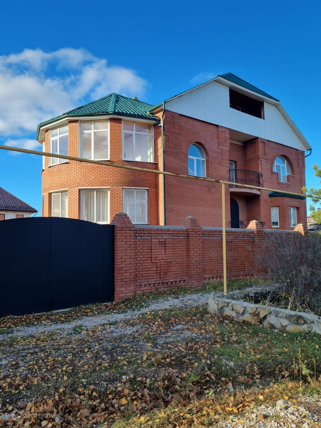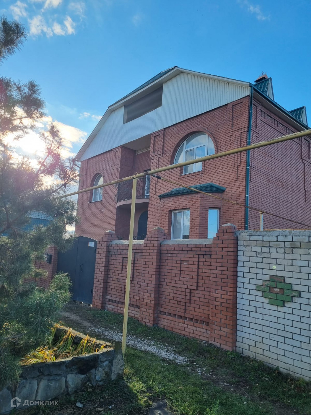 По периметру дом огорожен забором из красного кирпича и профлиста. На территории участка расположен кирпичный гараж и срубовая баня которая включает в себя комнату для отдыха, помывочную и парилку.