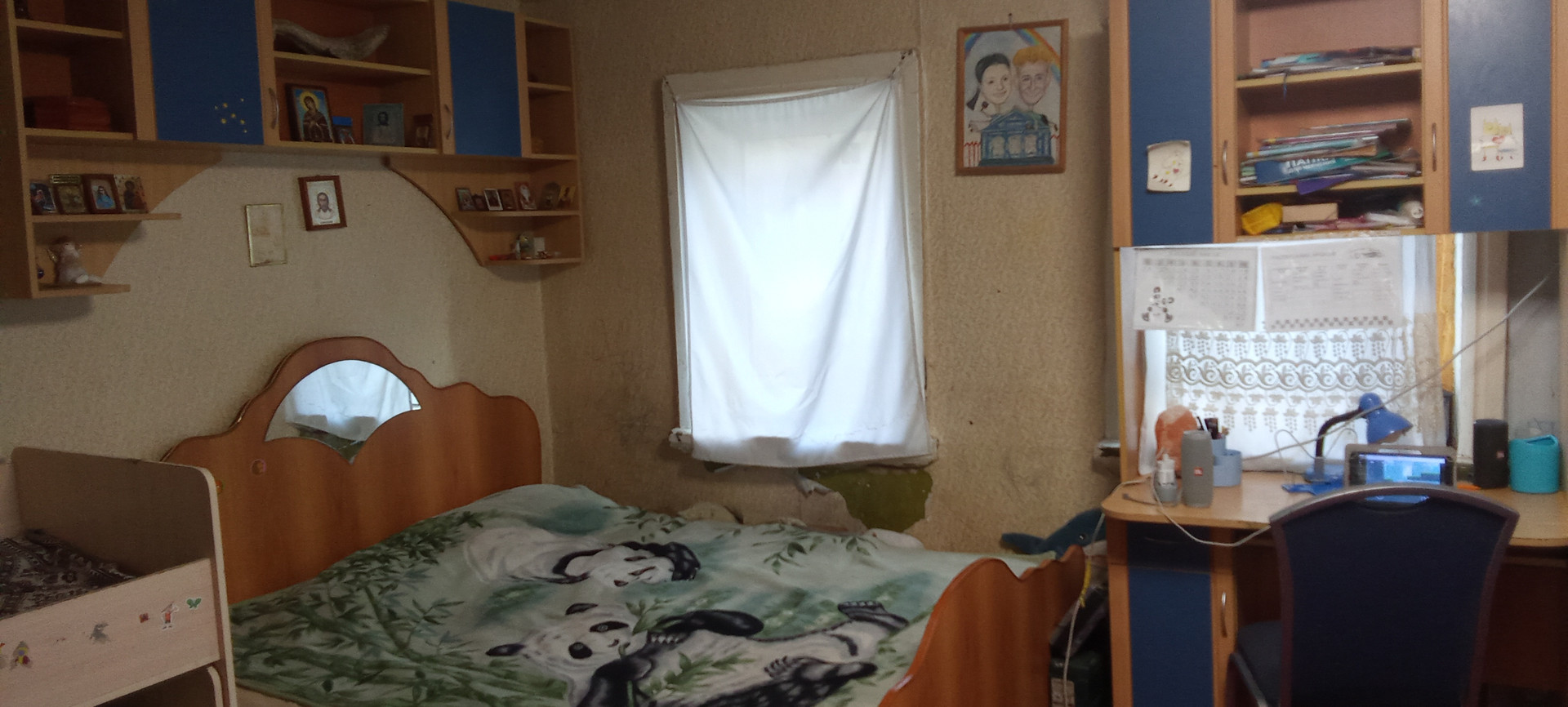 В доме унитаз, ванна, бойлер на 80 л ( остаётся),в одной комнате пластиковые окна, канализация 3 кольца,вода из своей скважины.Отопление печное,уголь и дрова оставляем, есть кондиционер на кухне ( остаётся), газовая труба вдоль забора.Есть большая веранда с полками для хранения вещей и чулан.