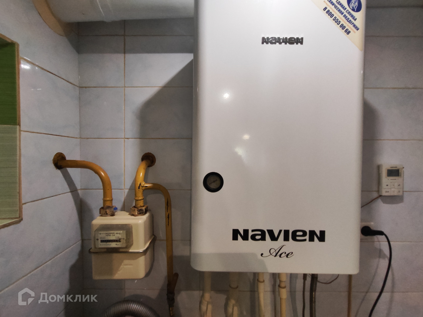 Отопление производится с помощью двухконтурного котла.