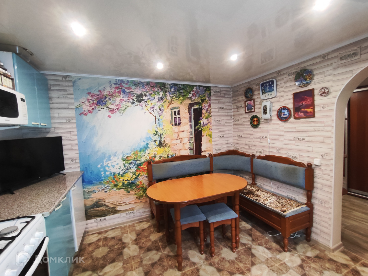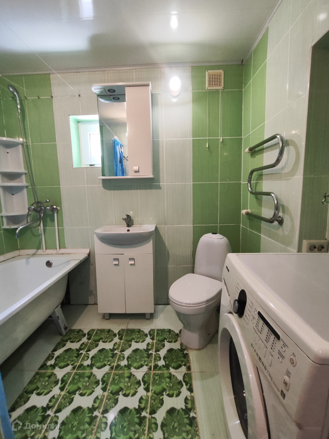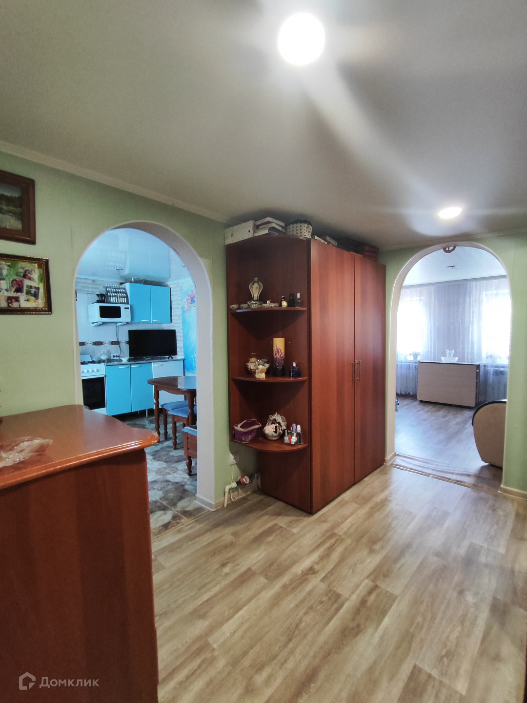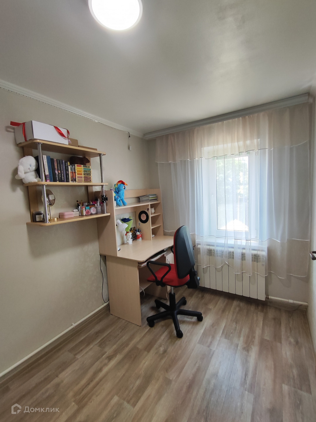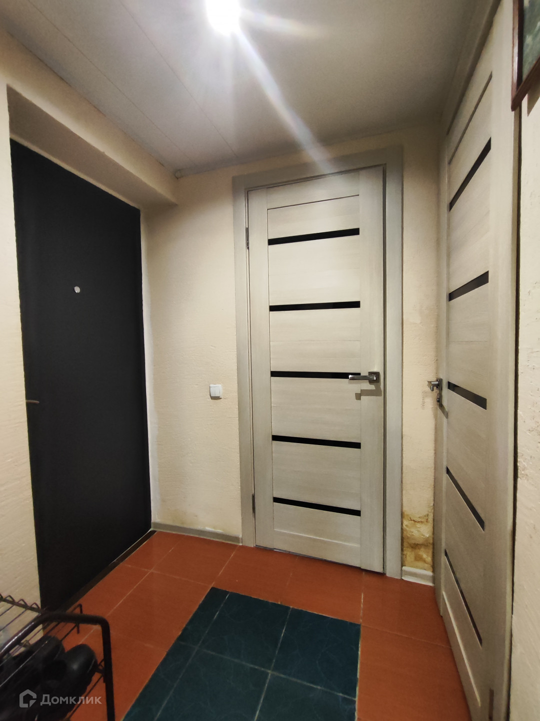 Натяжные потолки, на окнах пластиковые стеклопакеты, стены выровнены, на полу линолеум, современные радиаторы отопления, ванная в плитке.