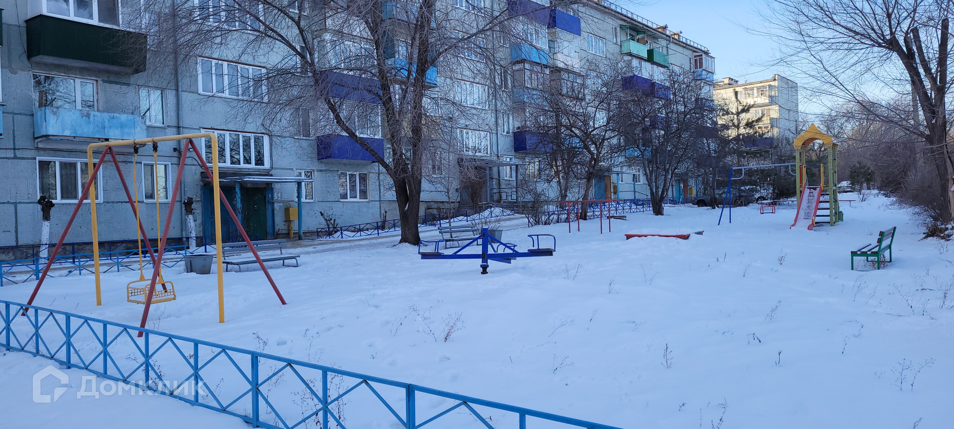 Во дворе дома детская игровая площадка.