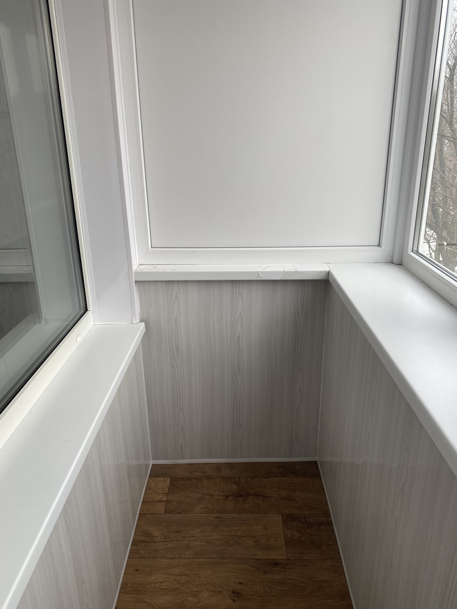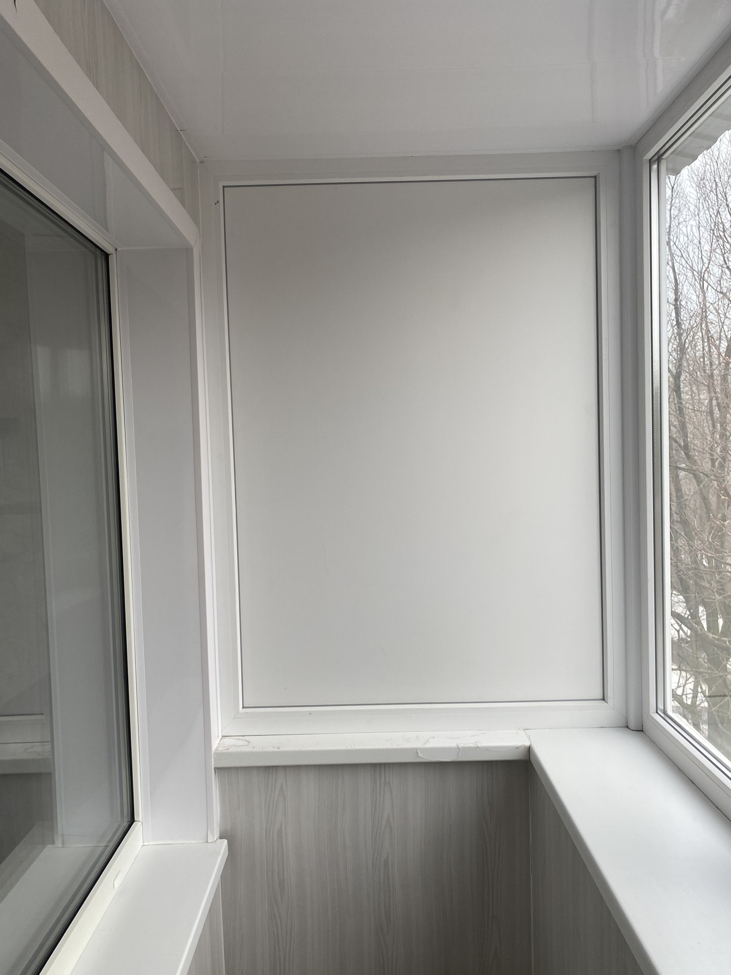 Балкон- застеклен в серо-белых тонах, обшит полностью!!