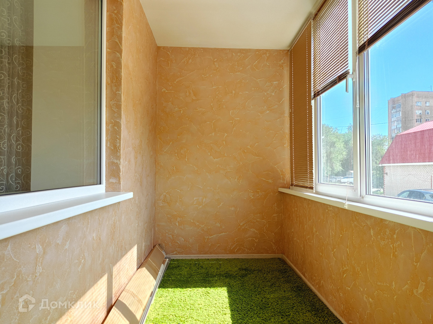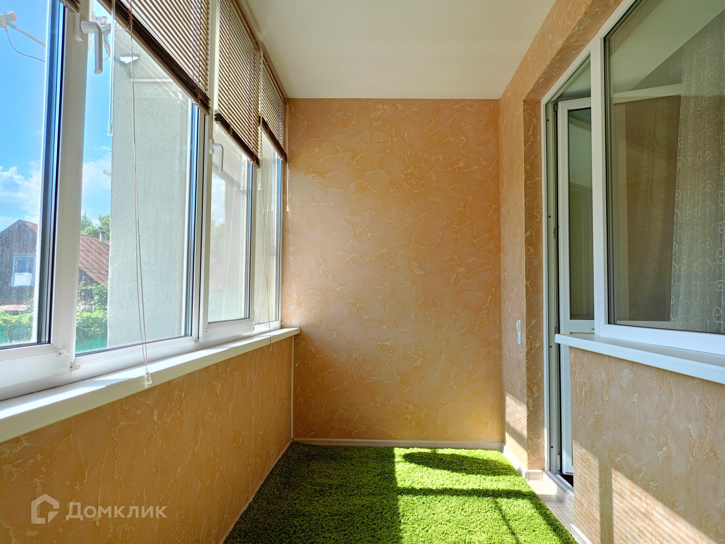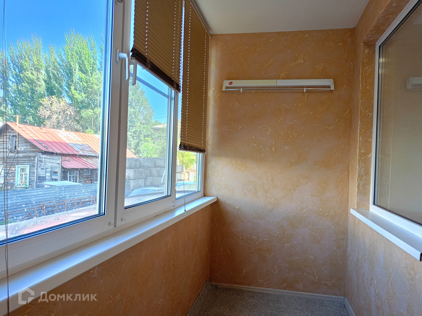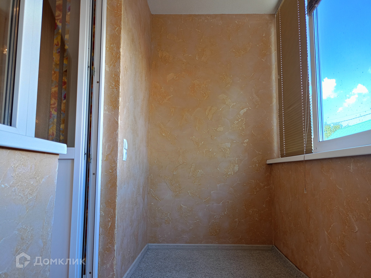 Лоджия остеклена, выравнены стены и нанесена декоративная штукатурка.