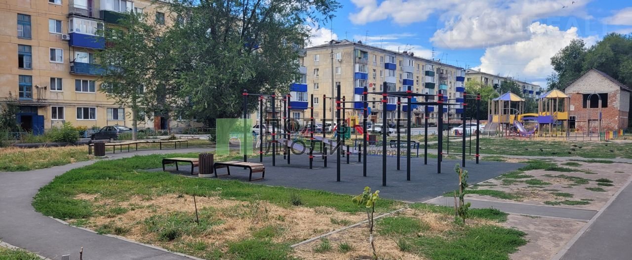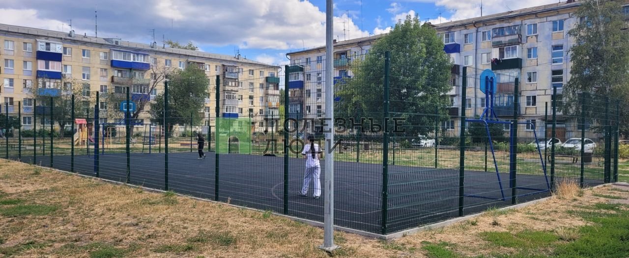 Во дворе современная детская и спортивная площадки.
