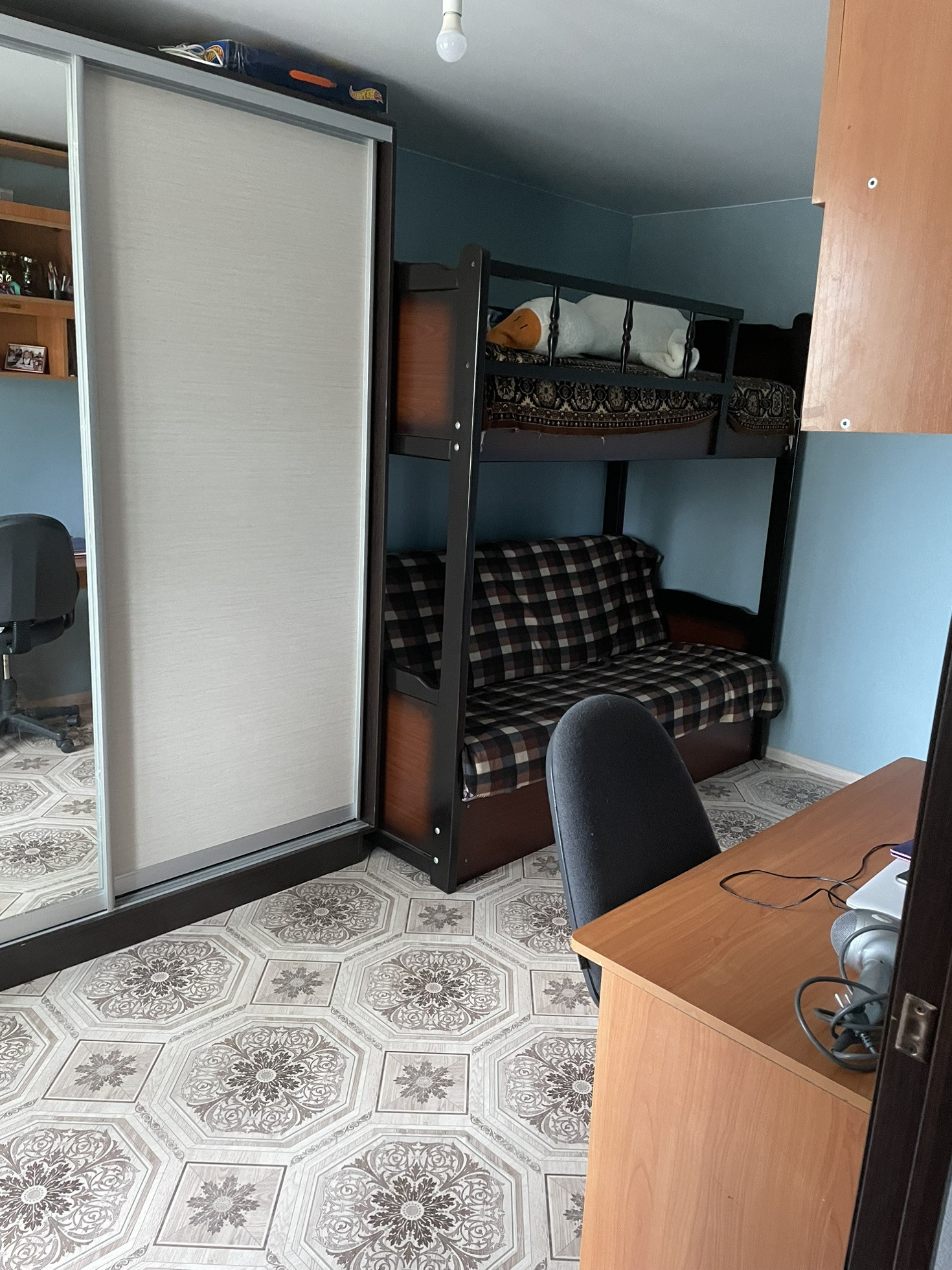 Квартира чистенькая - заезжай и живи. В шаговой доступности школы, детские сады, обновленный офис Сбербанка, почта, рынок, торговый центр, различные сетевые магазины и пекарни, а также остановка общественного транспорта. Квартира теплая, светлая, соседи спокойные. Тараканы, мыши и прочая нечесть отсутствует. Теплые полы. Возможен торг.