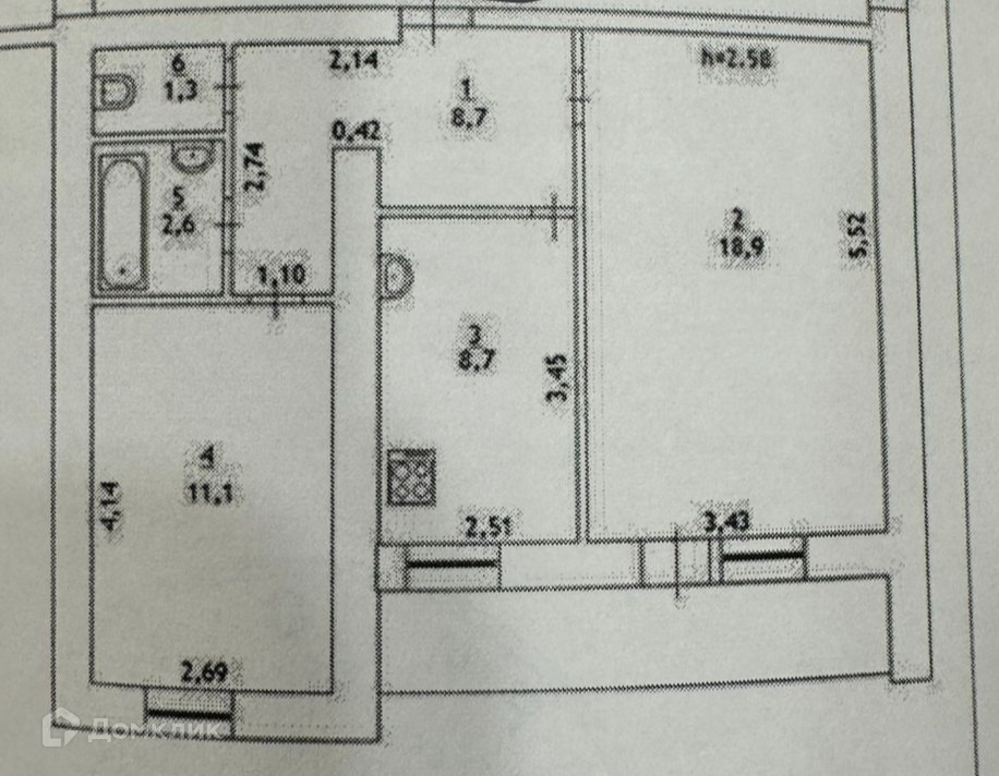 Общая площадь 51 м2