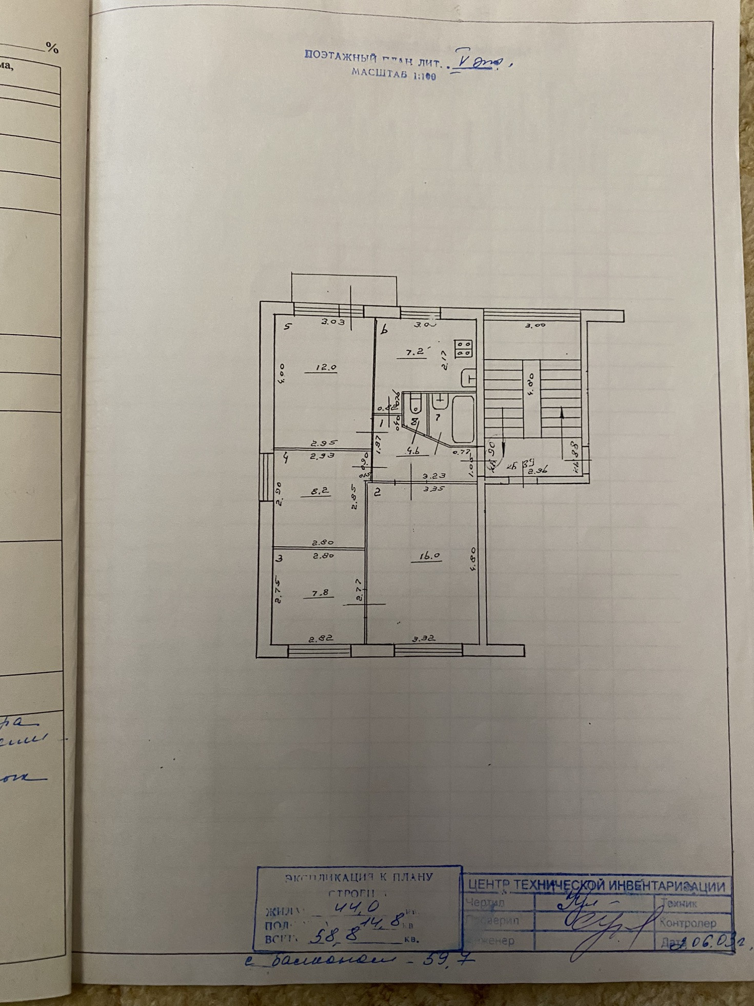 Общая площадь 59.7 м2