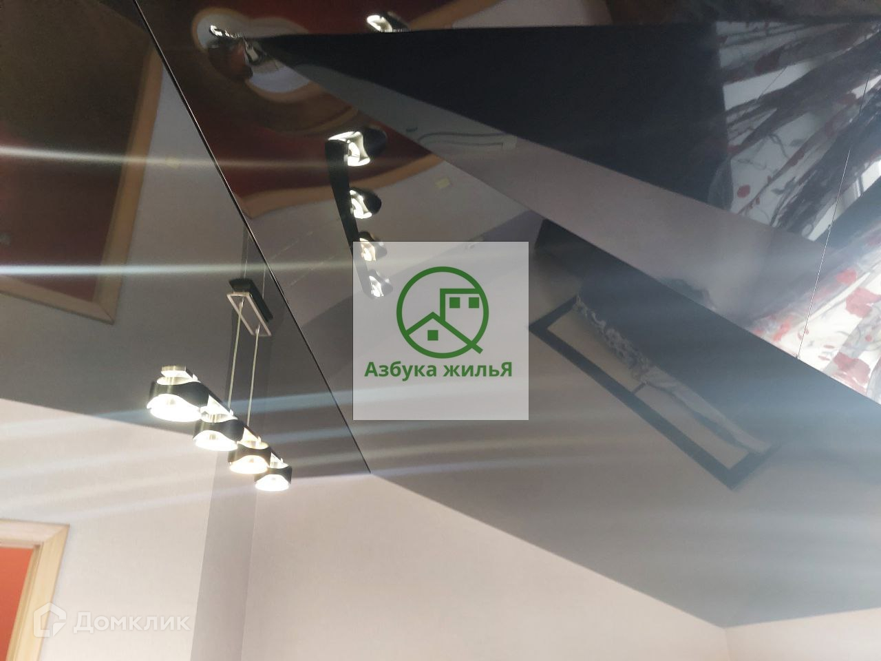 По всей квартире натяжные потолки с большим количеством декоративных подсветок .