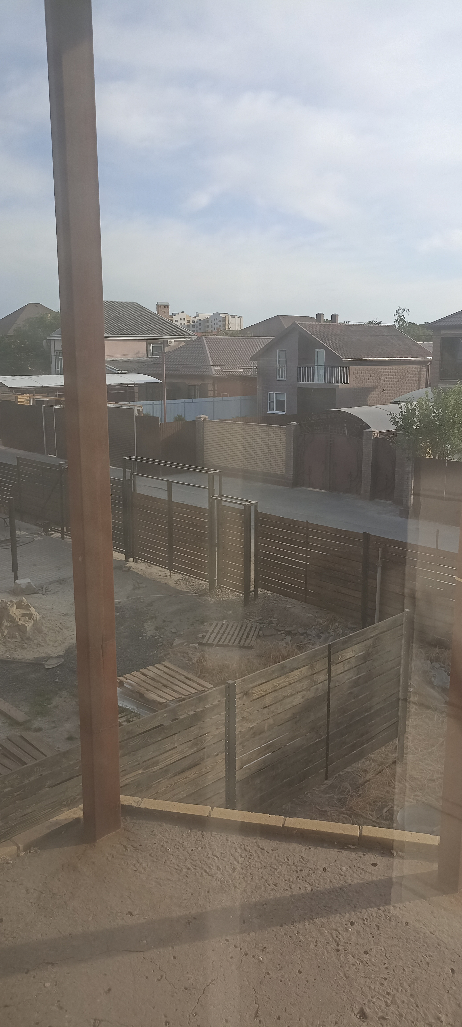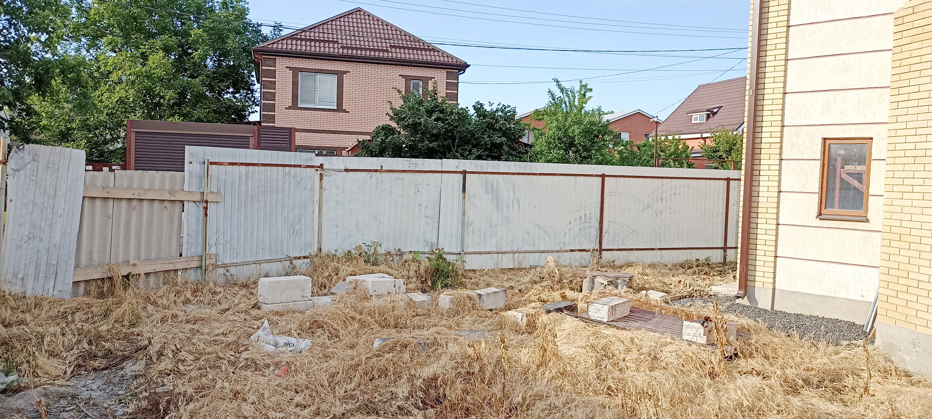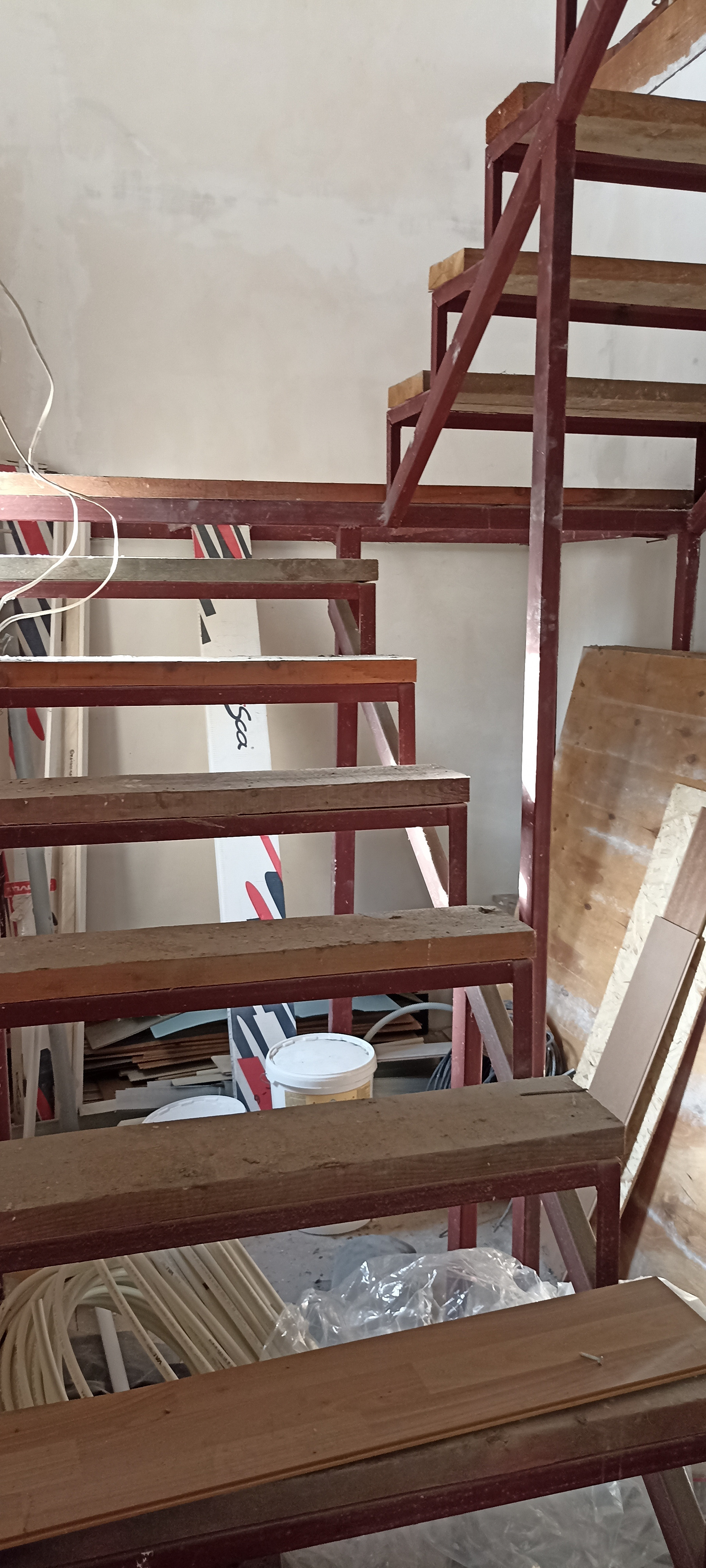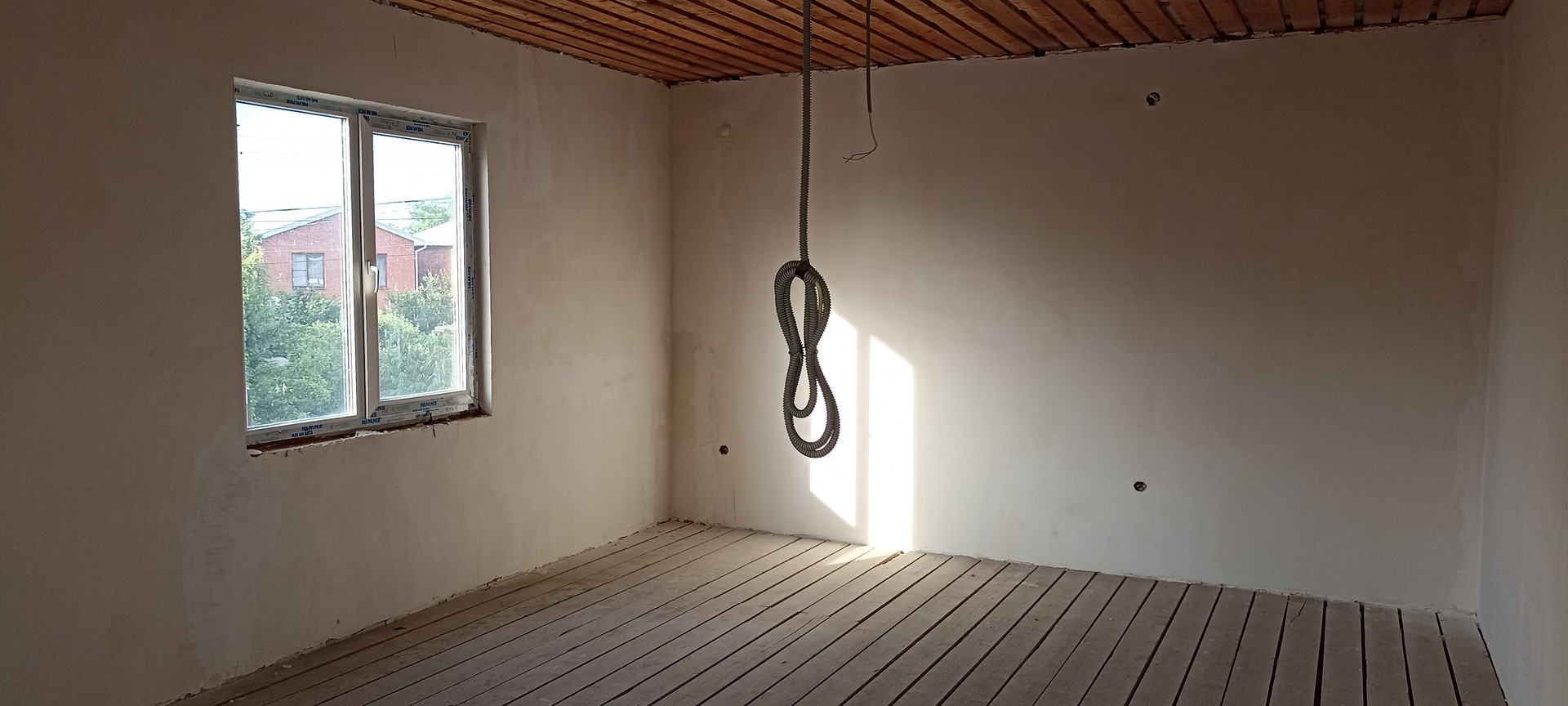 - внутри дома, стены подготовлены под обои