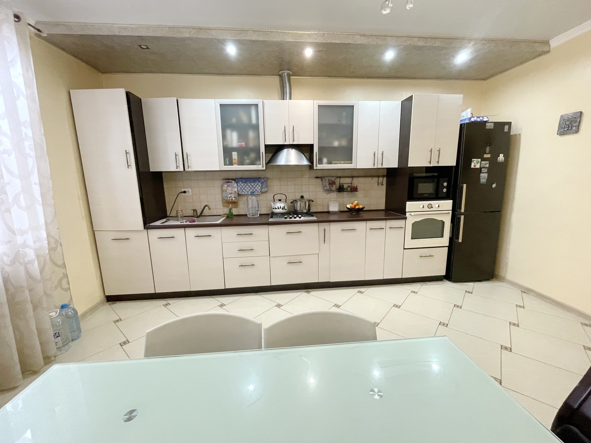 Просторная кухня, кухонный гарнитур и встроенная техника остаются