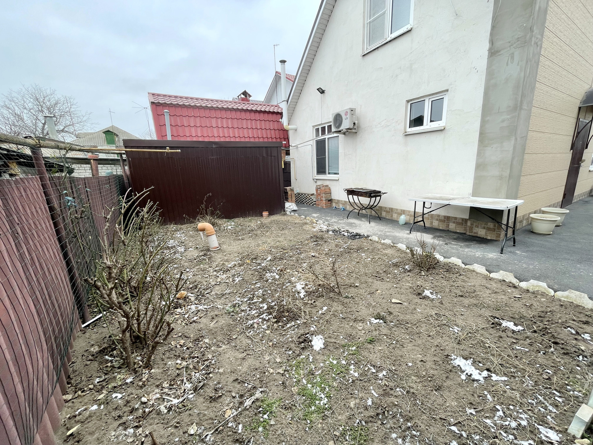 На заднем дворе есть мангальная зона
