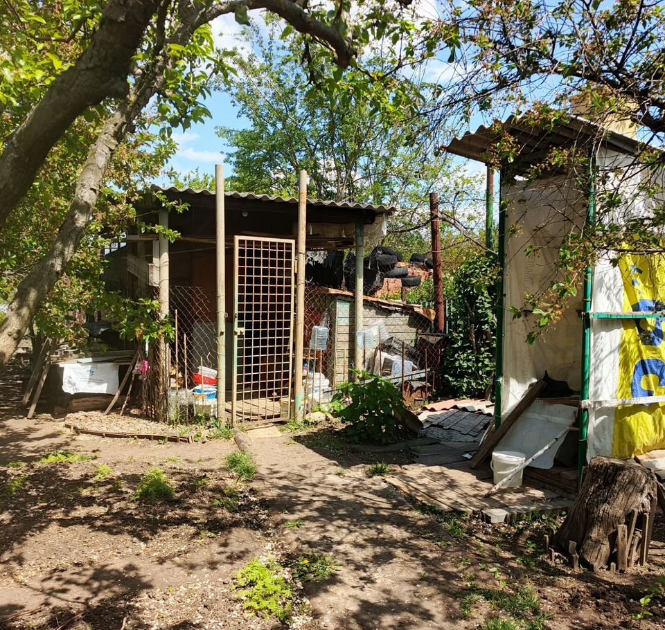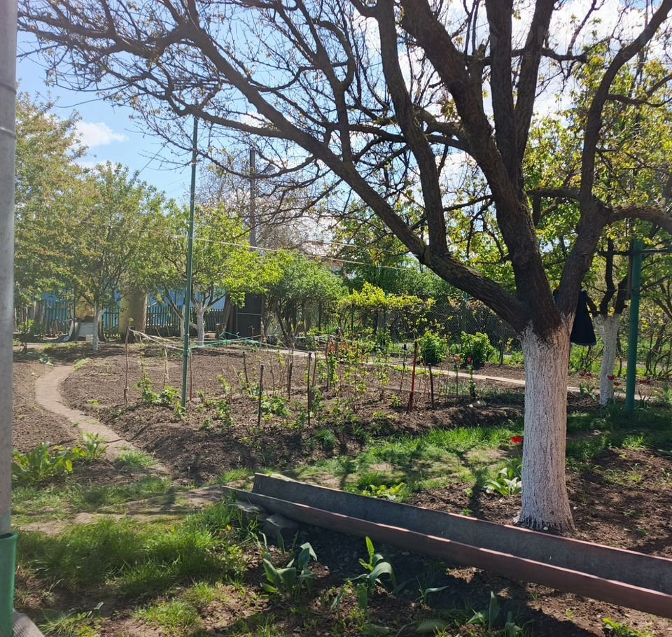 На участке имеются плодовые деревья,а именно - черешная ,вишня ,груша, а также 9 видов винограда,разнообразные цветы. Также есть уличный душ, вольер для собаки ,сарай, место для отдыха.