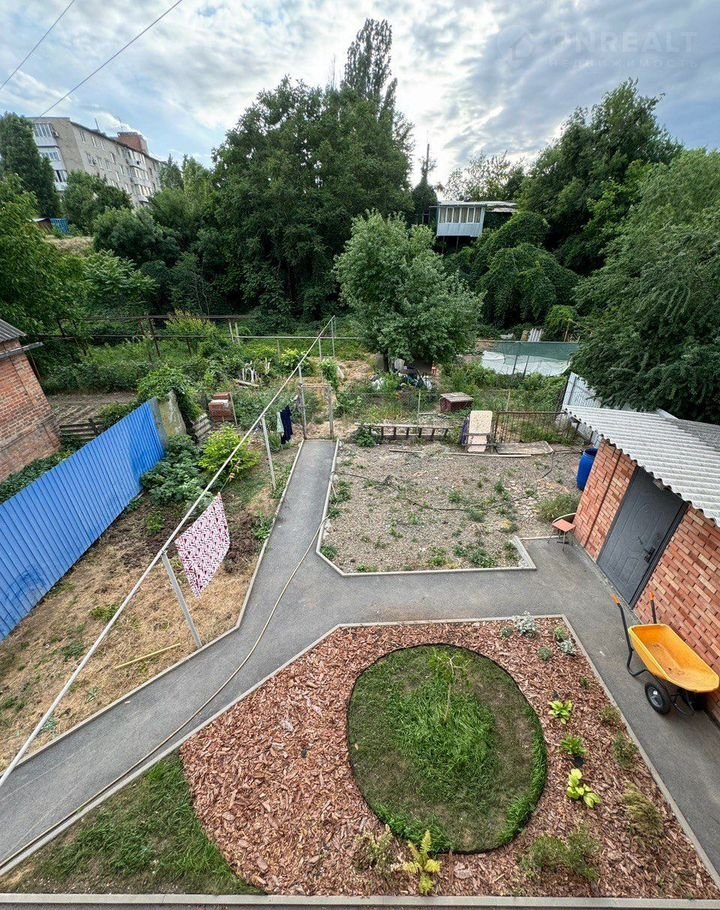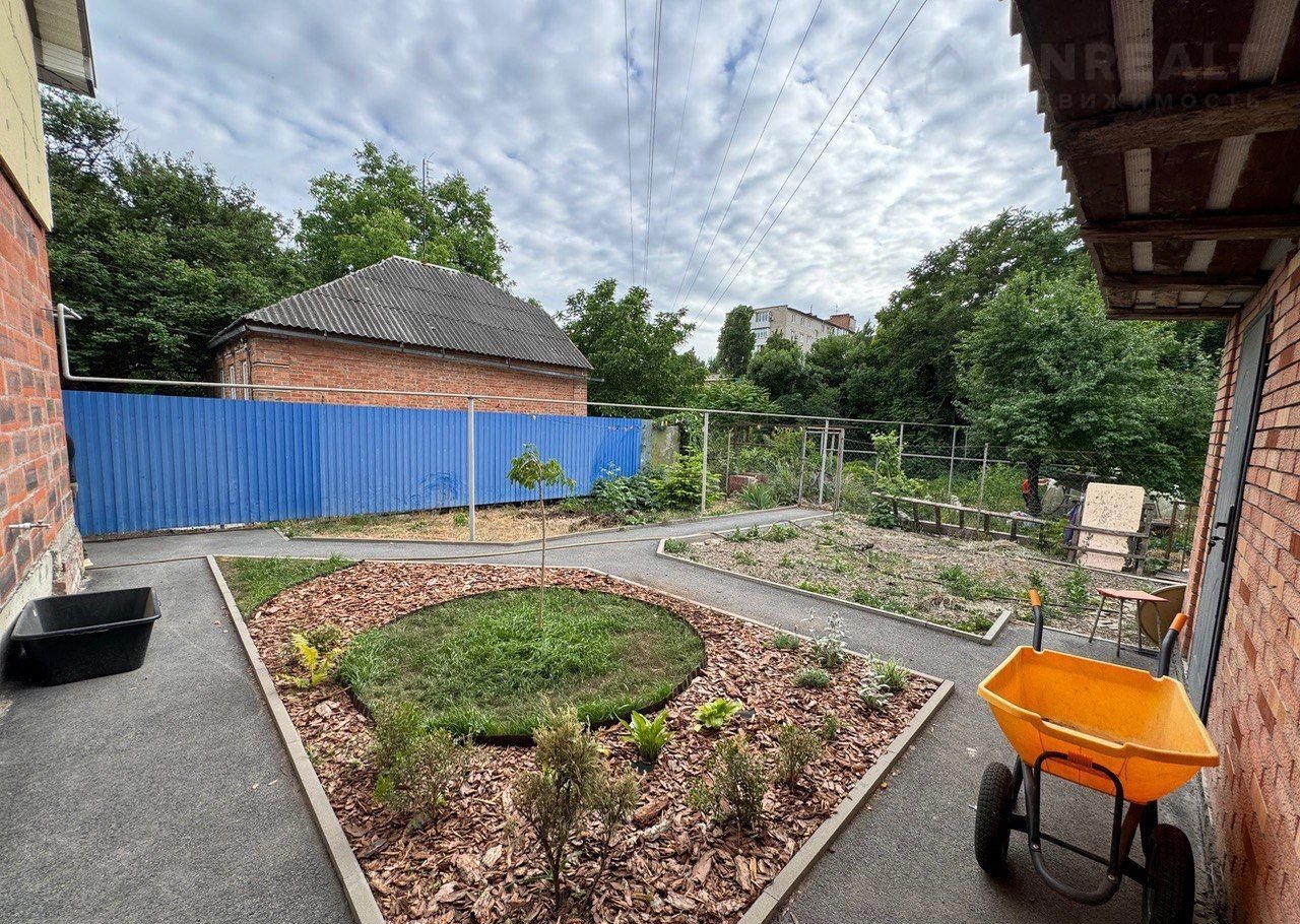 Во дворе организовано парковочное место для трех автомобилей. На задней части двора построен кирпичный сарай, есть два больших газона (один засеян белым клевером), распланировано место под террасу и мангальную зону. Свободную землю Вы можете использовать по своему усмотрению (в настоящее время земля используется под теплицу и огород)
