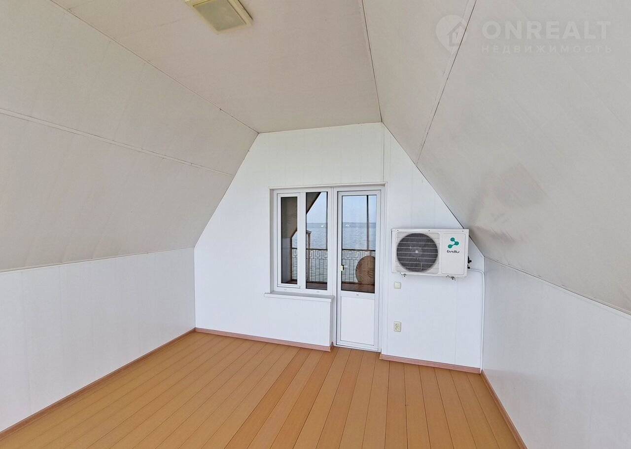 Мансарда. Уютная прихожая. Две раздельные комнаты, с одной выход через балкон к морю. Установлена сплит-система. Стены и полоток из деревянного сруба. На полу ламинат.