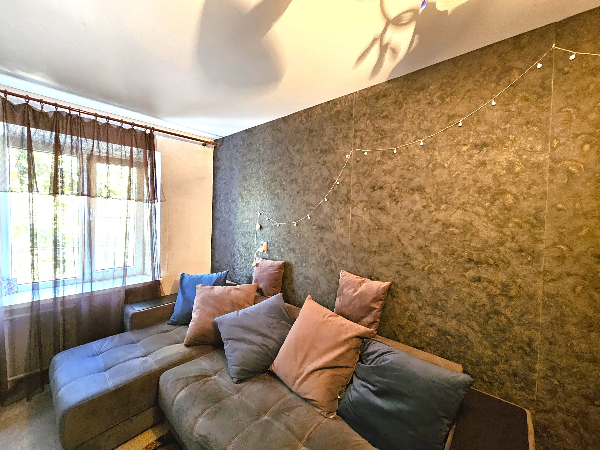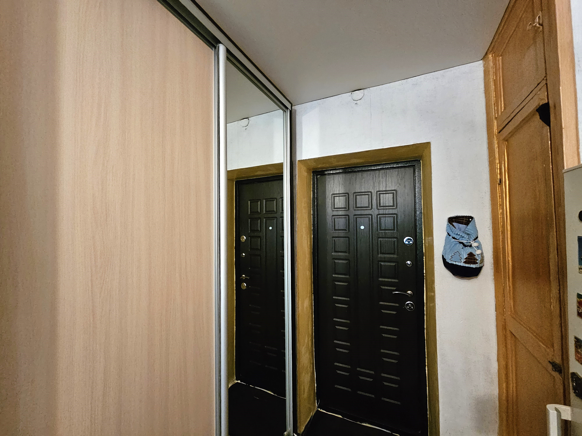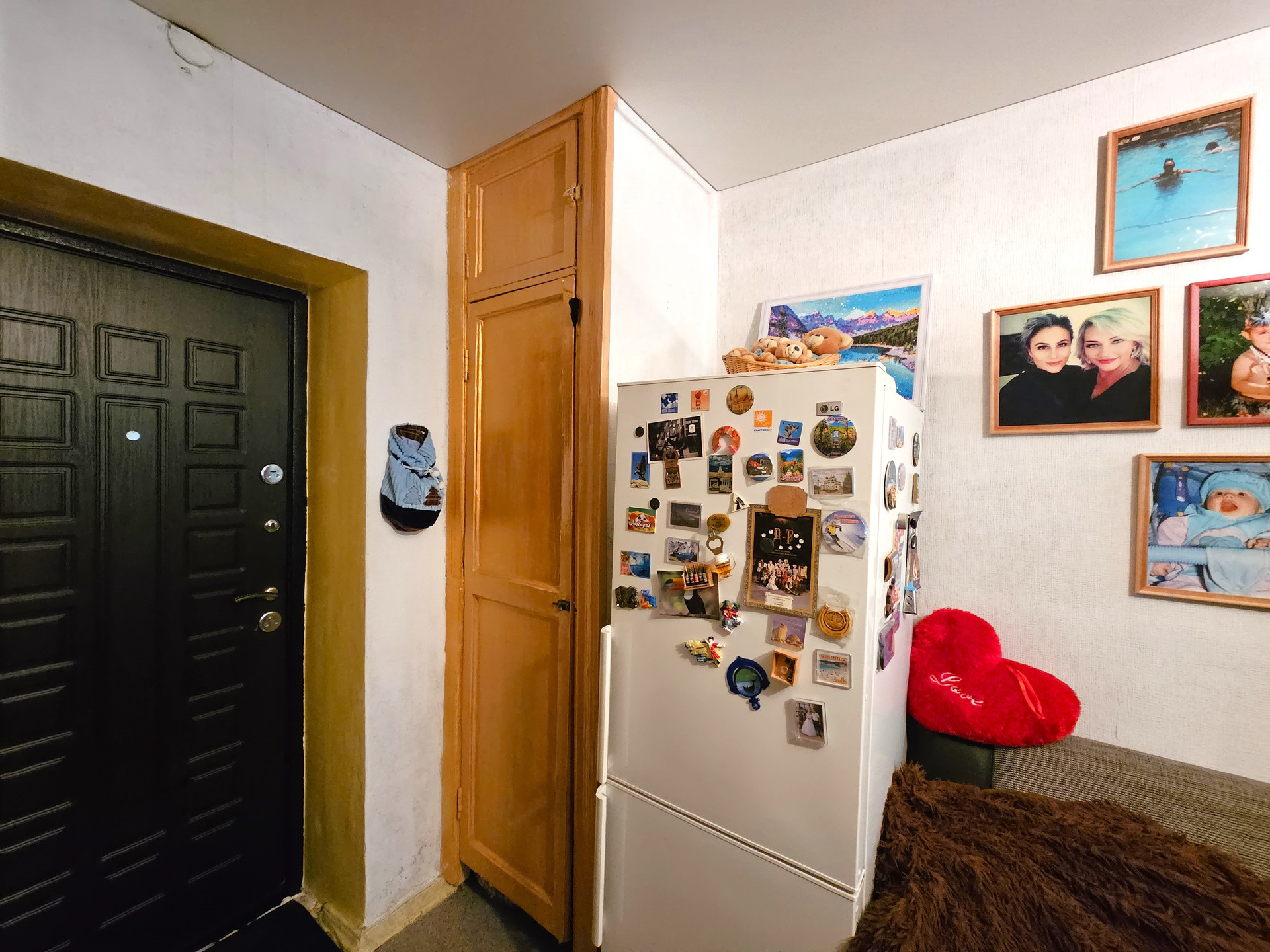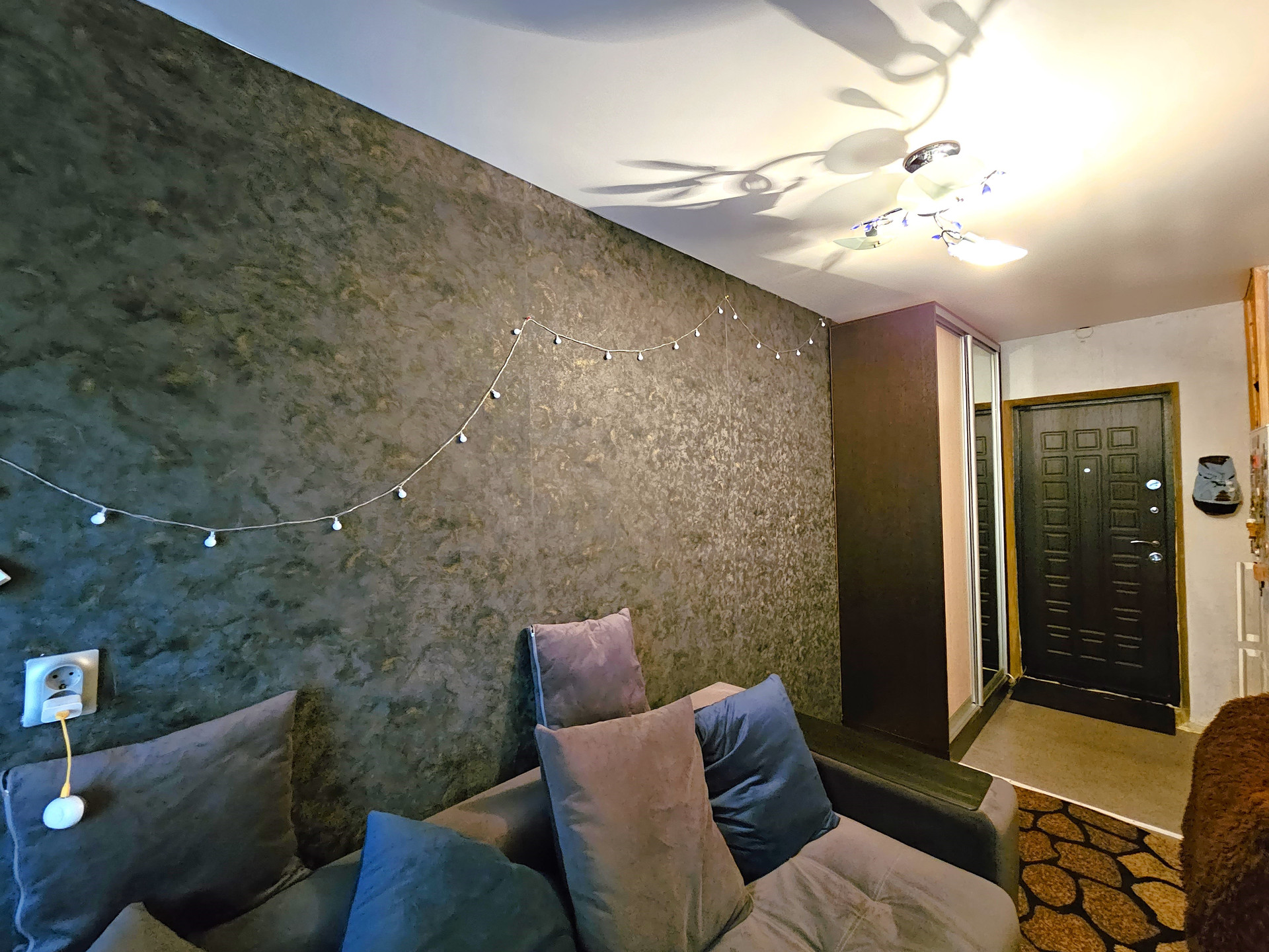 - В комнате расположен новый двухспальный раскладной диван, сплит система, натяжной потолок, темба под ТВ., раскладное кресло, холодильник, шкаф купе., заменен радиатор отопления, новая проводка, новые световые приборы, имеется кладовая, которую можно переделать под С/У.