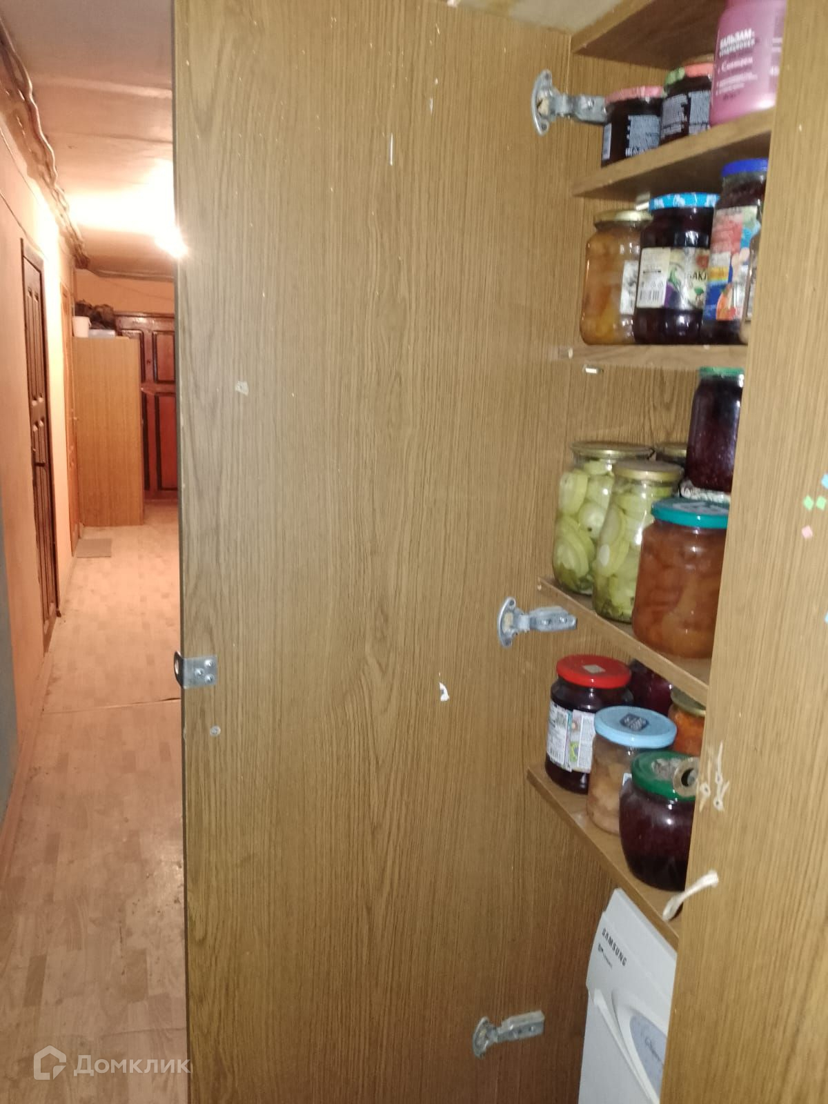 - В коридоре есть шкафчик для хранения и стиральная машина